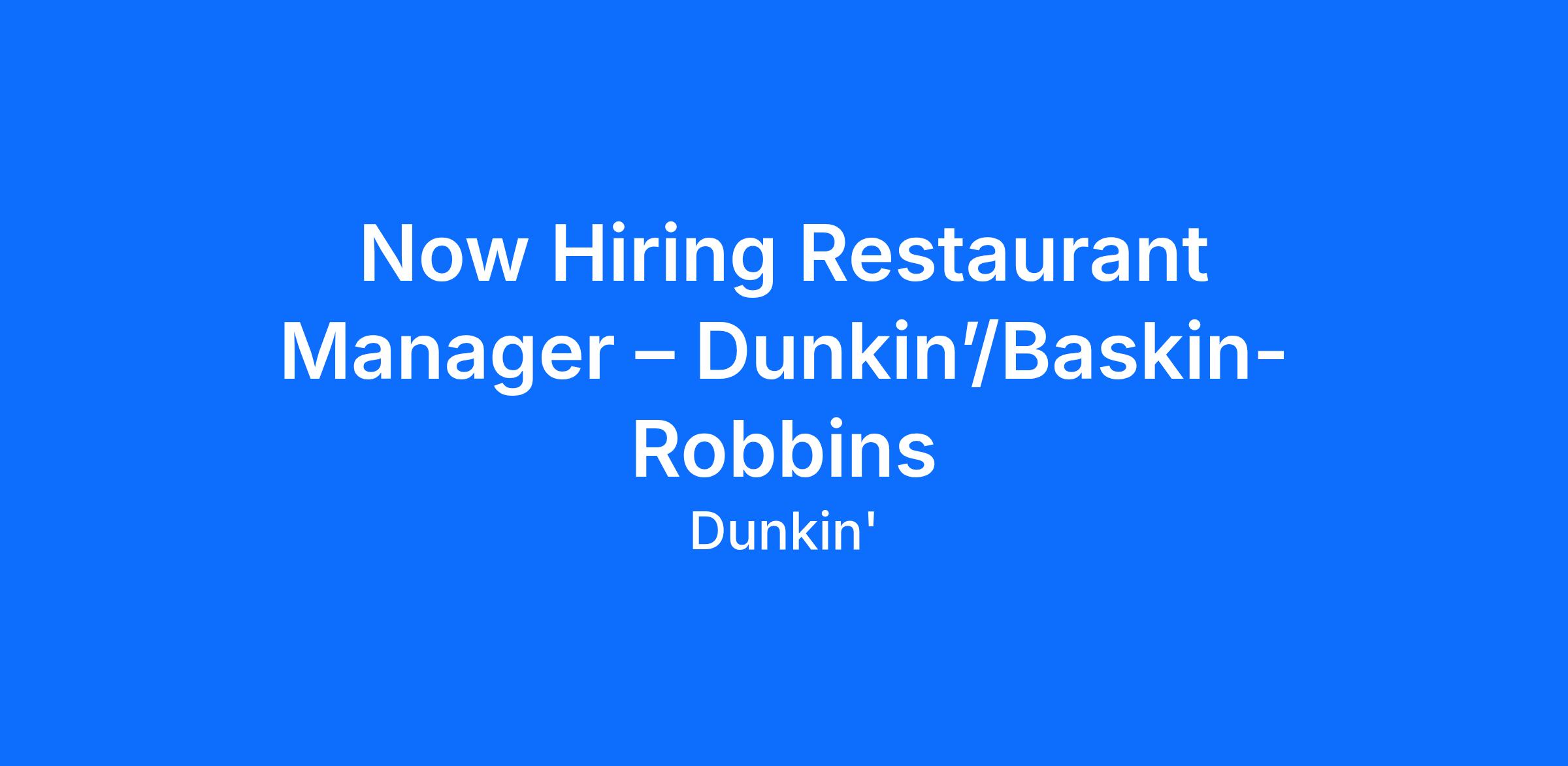 Now Hiring Restaurant Manager – Dunkin’/Baskin-Robbins