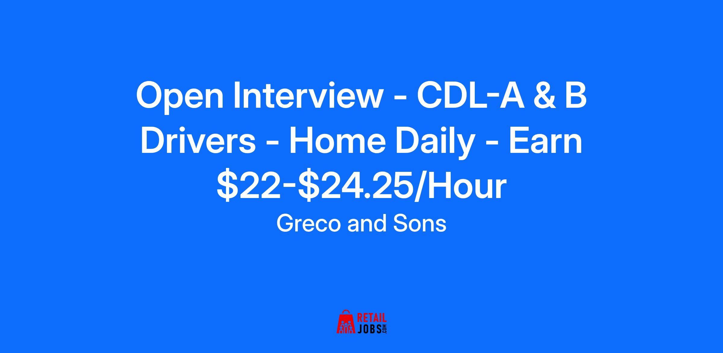 Open Interview - CDL-A & B Drivers - Home Daily - Earn $22-$24.25/Hour