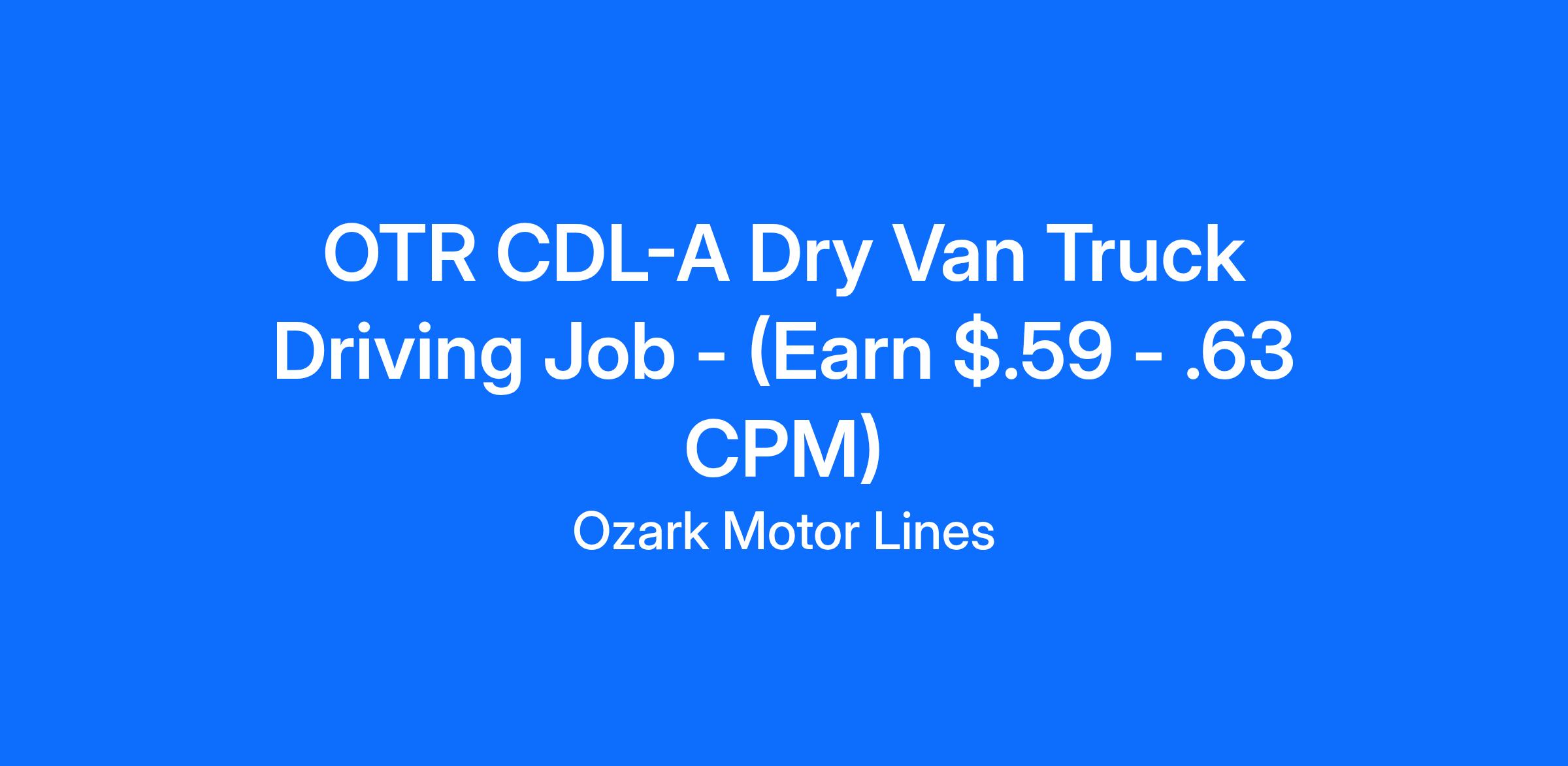 OTR CDL-A Dry Van Truck Driving Job - (Earn $.59 - .63 CPM)