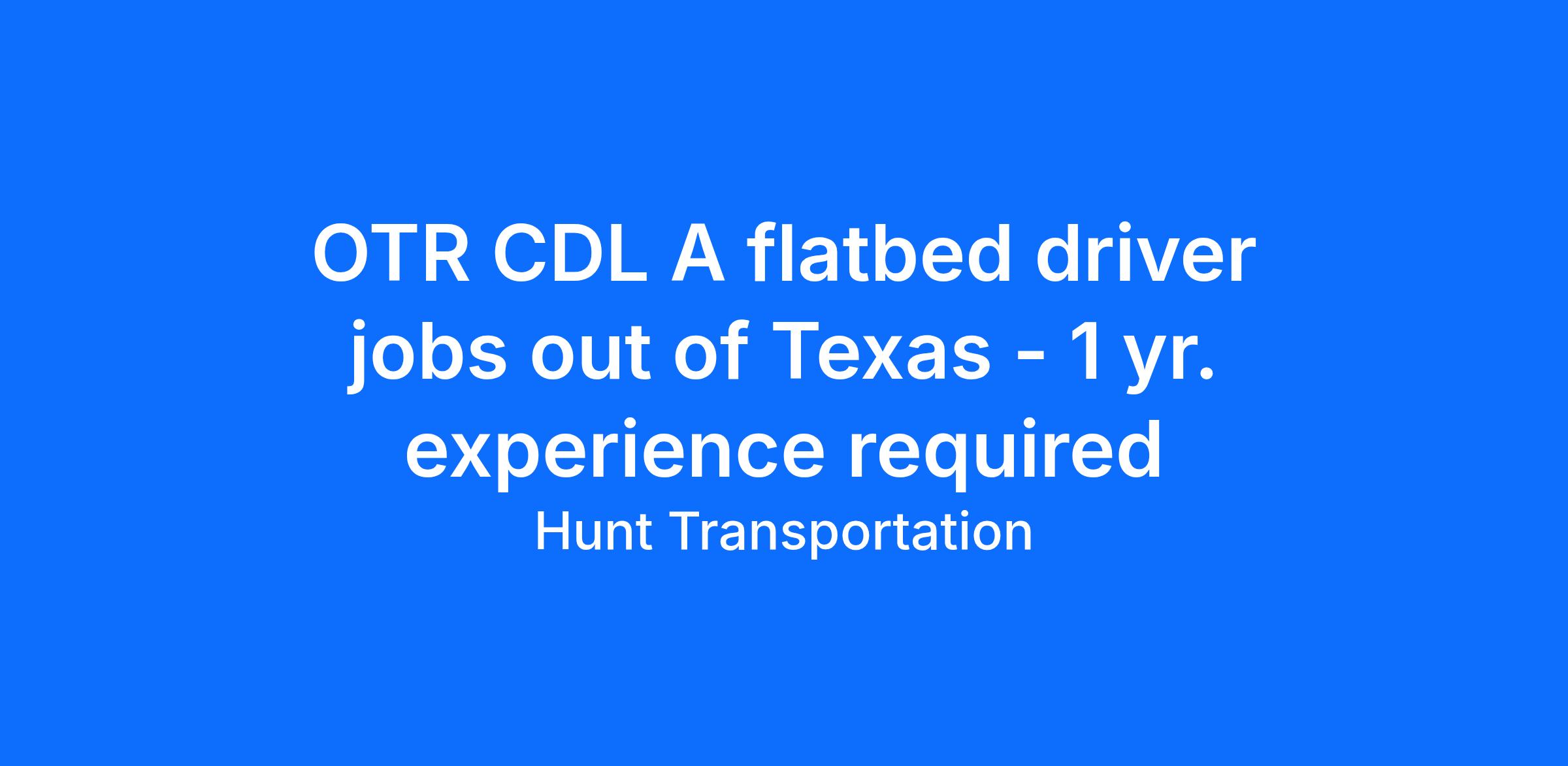 Drivers who want to travel will see the country on the Hunt Transportation national OTR fleets. These are our highest mileage fleets and home to our top-earning drivers.Salary: Top 50% average $93,347 per yearCPM: Starting pay $.65 to $.68 cpmExperience: One-year verifiable tractor trailer experience with a class A CDL