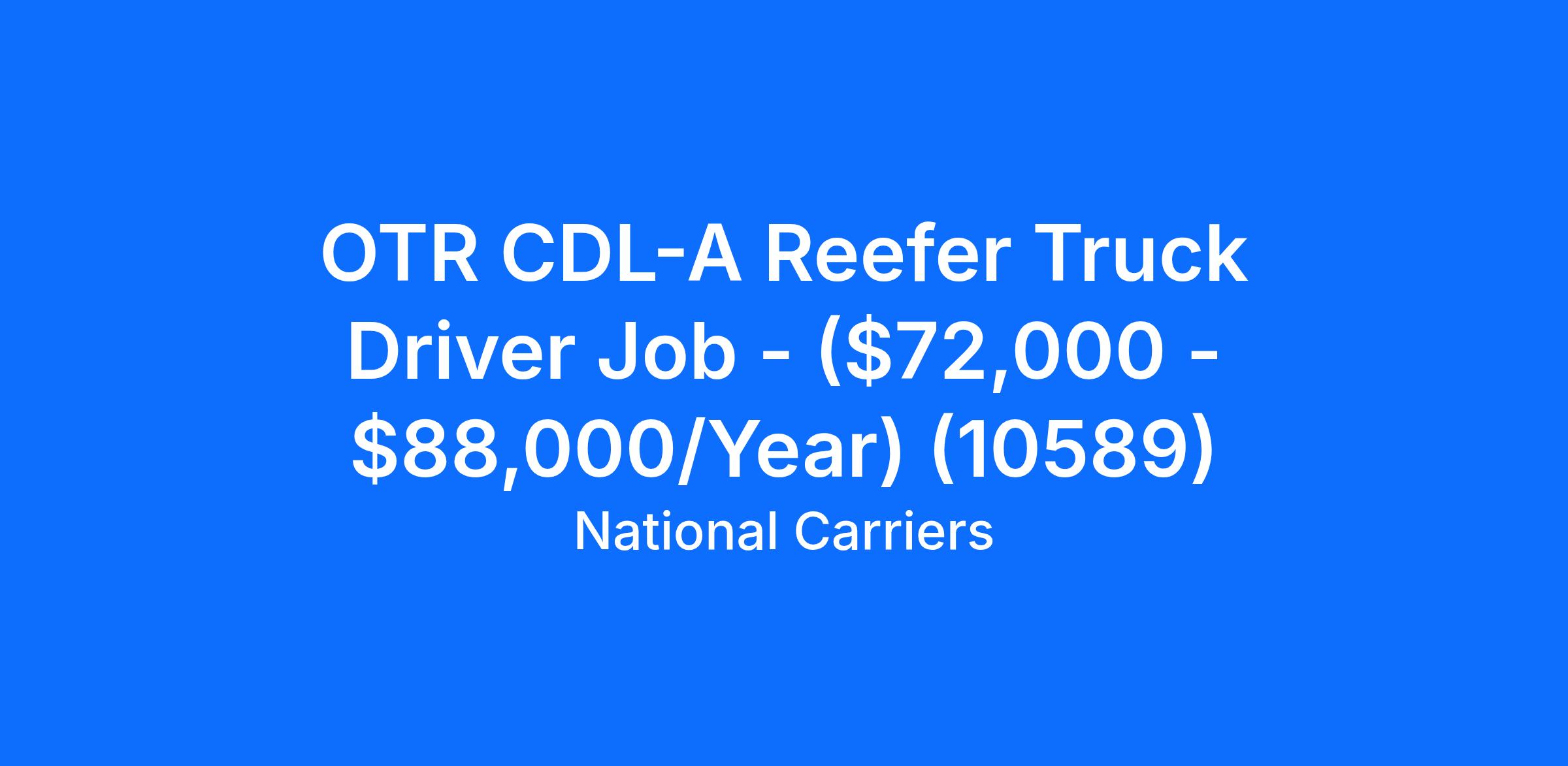 OTR CDL-A Reefer Truck Driver Job - ($72,000 - $88,000/Year) (10589)