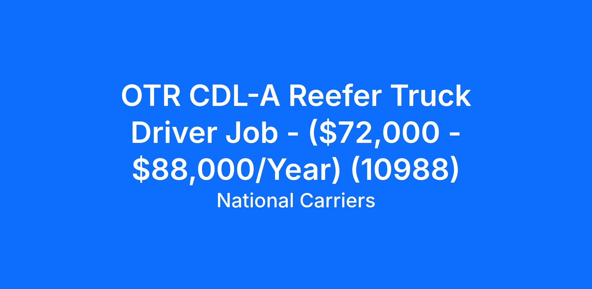 OTR CDL-A Reefer Truck Driver Job - ($72,000 - $88,000/Year) (10988)
