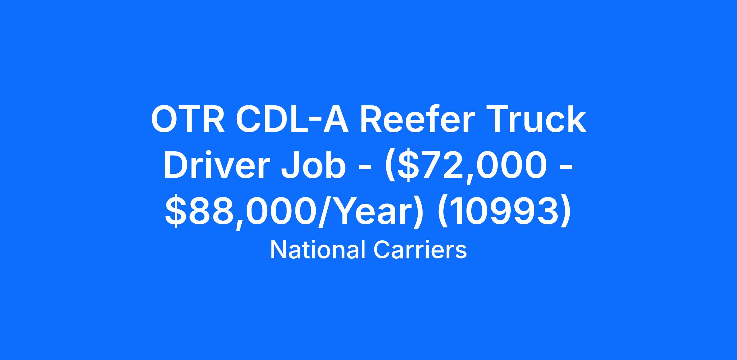 OTR CDL-A Reefer Truck Driver Job - ($72,000 - $88,000/Year) (10993)