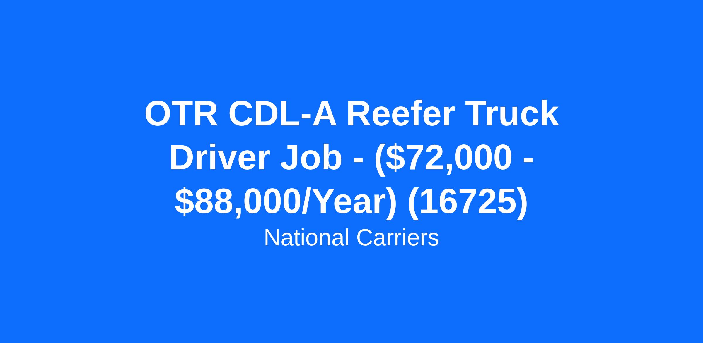 OTR CDL-A Reefer Truck Driver Job - ($72,000 - $88,000/Year) (16725)