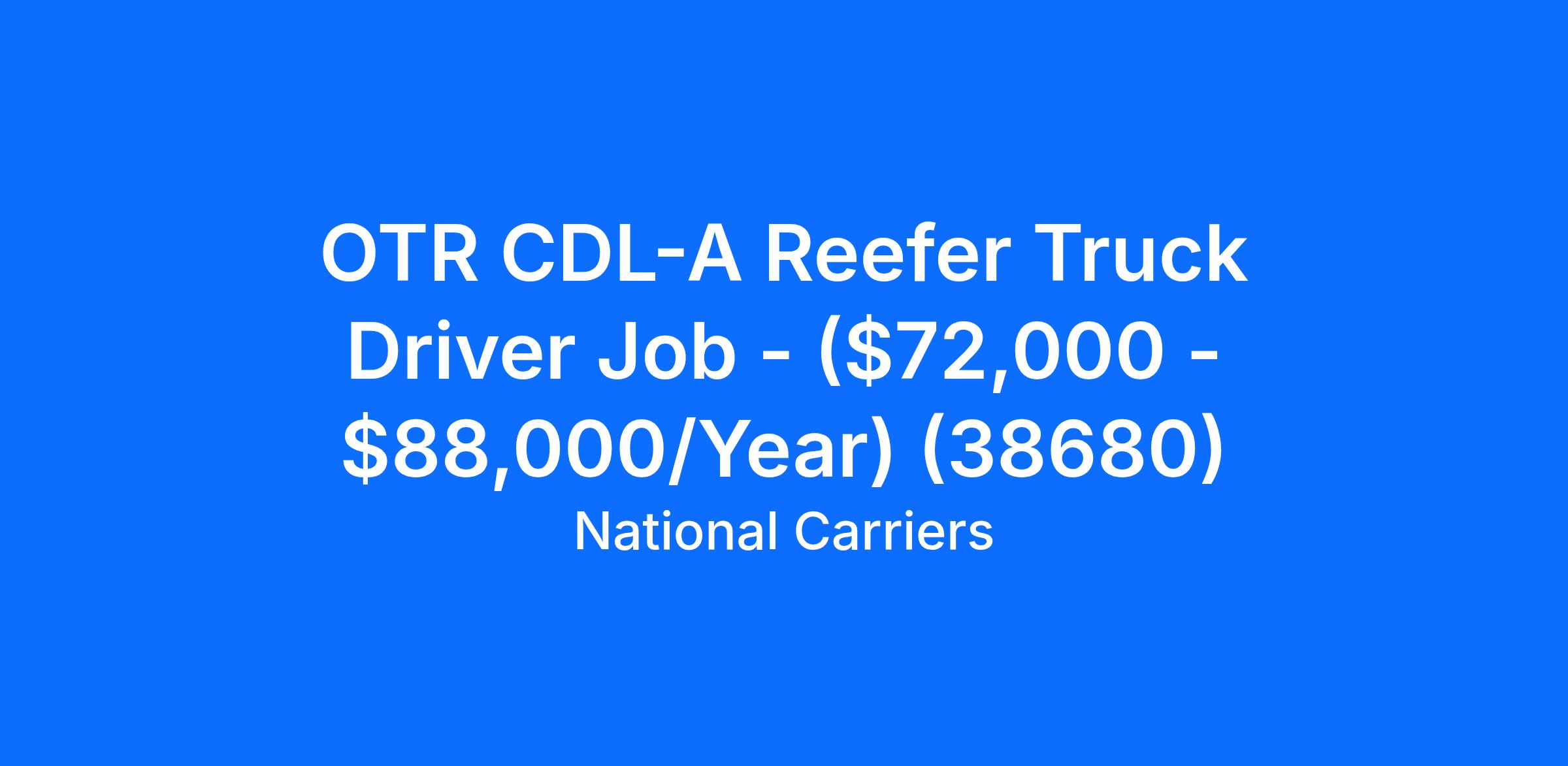 OTR CDL-A Reefer Truck Driver Job - ($72,000 - $88,000/Year) (38680)