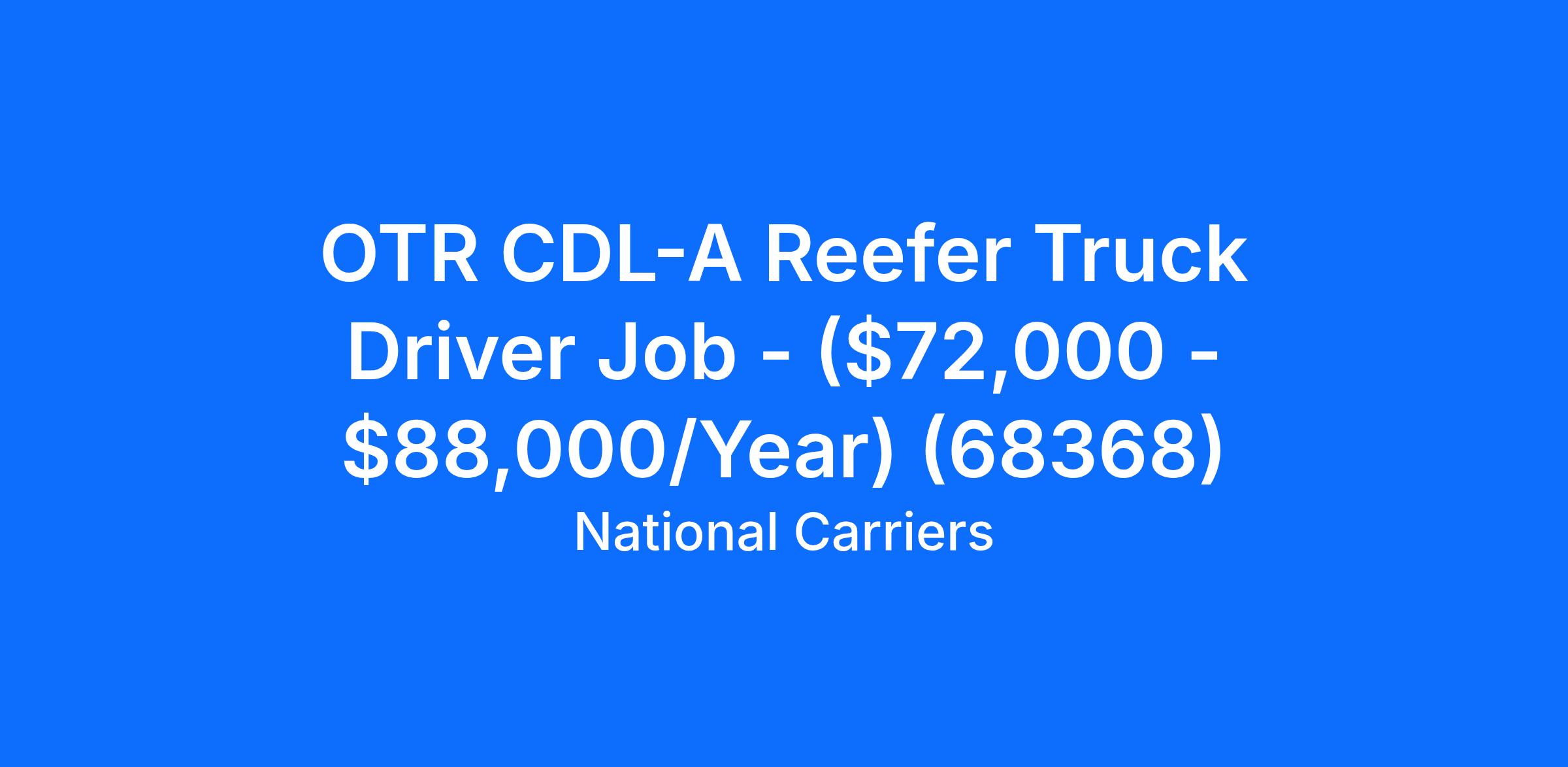 OTR CDL-A Reefer Truck Driver Job - ($72,000 - $88,000/Year) (68368)
