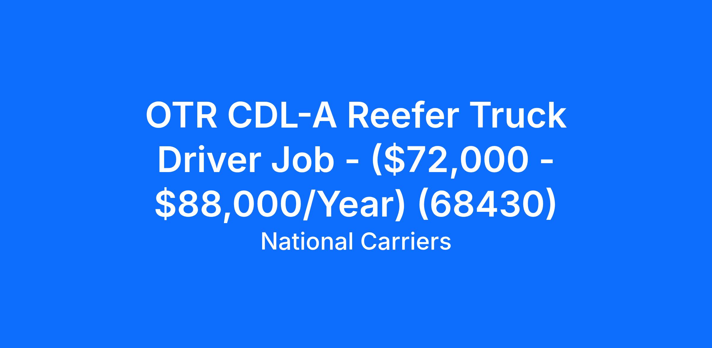 OTR CDL-A Reefer Truck Driver Job - ($72,000 - $88,000/Year) (68430)