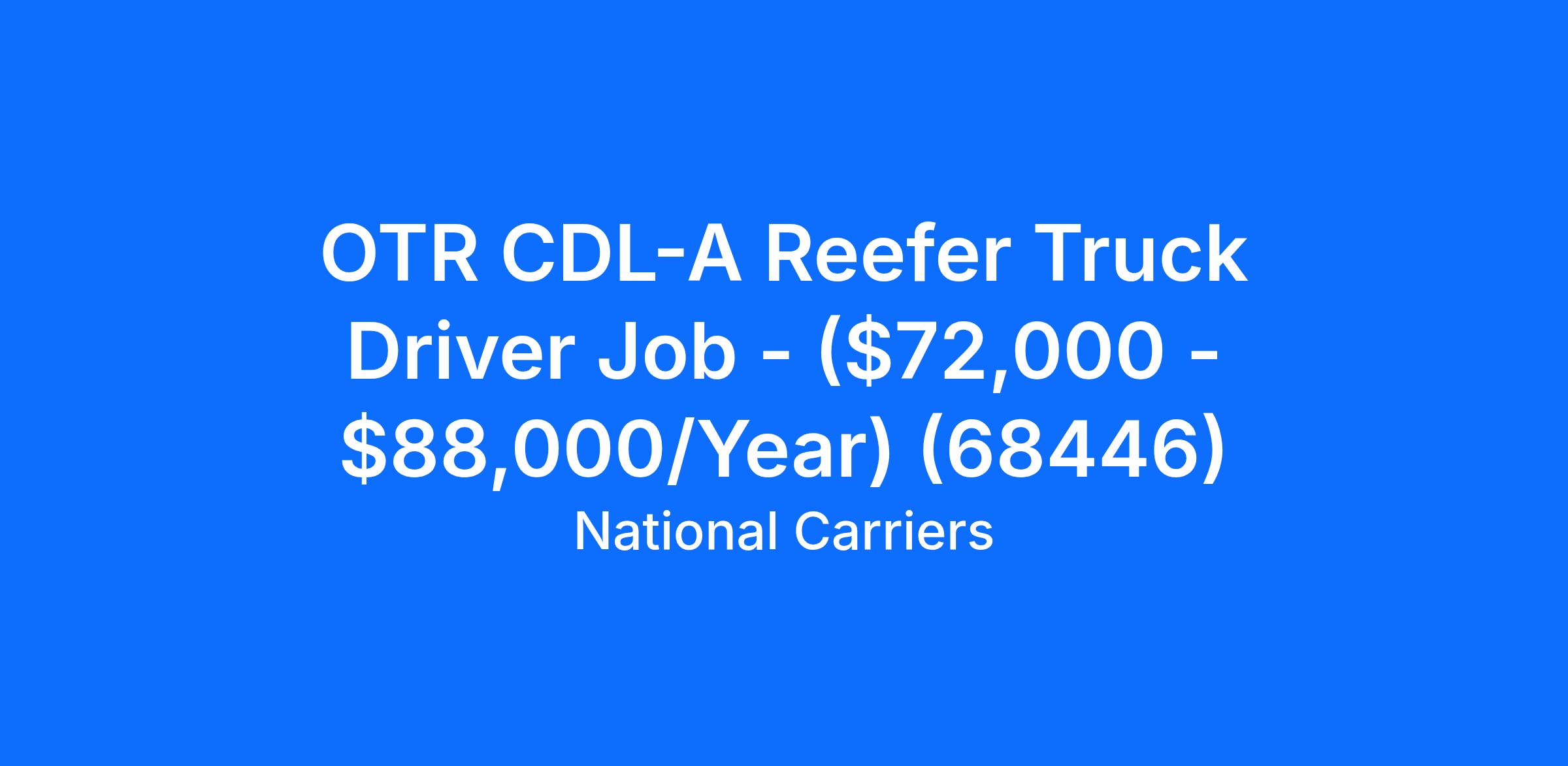 OTR CDL-A Reefer Truck Driver Job - ($72,000 - $88,000/Year) (68446)