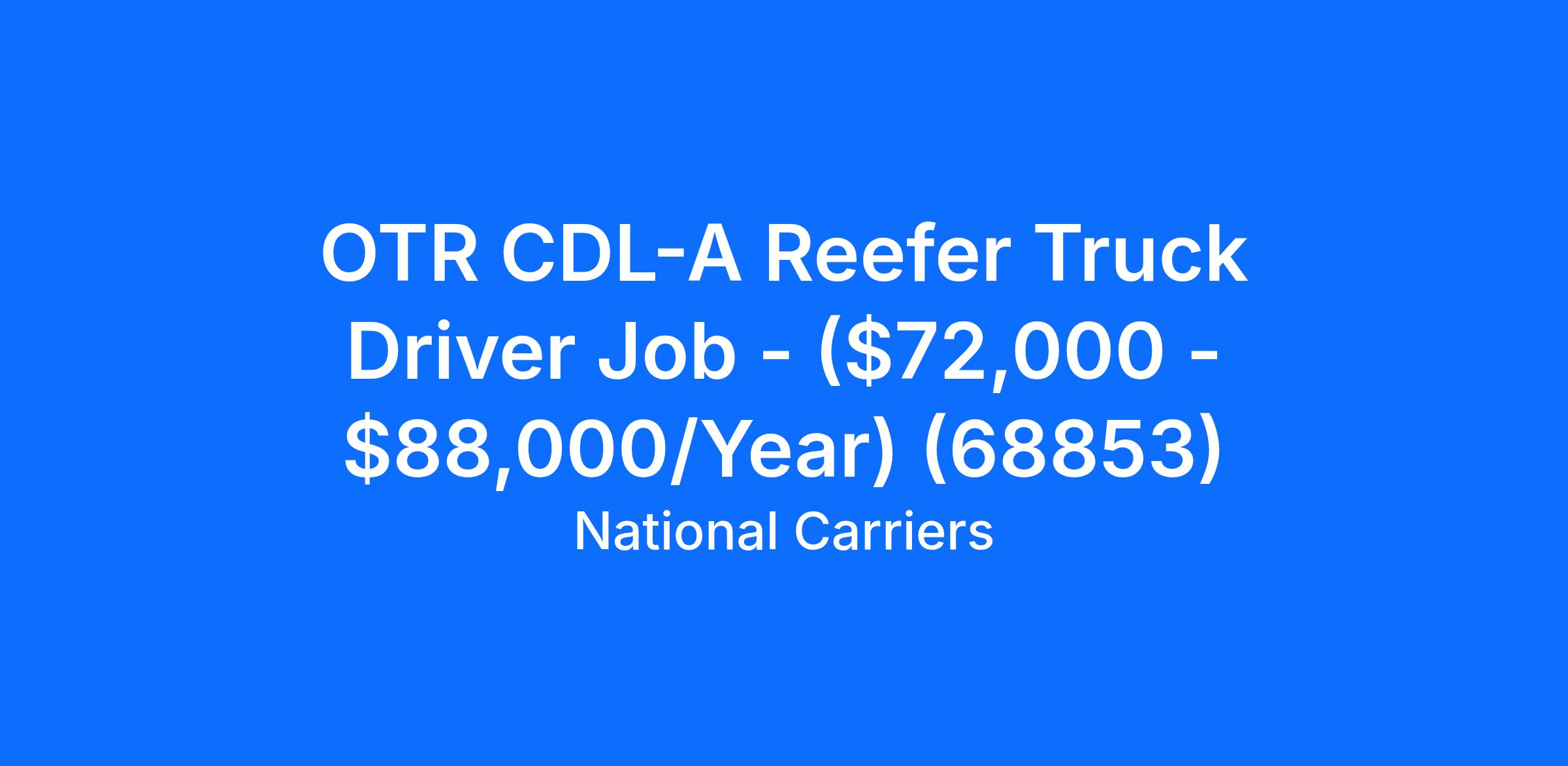 OTR CDL-A Reefer Truck Driver Job - ($72,000 - $88,000/Year) (68853)