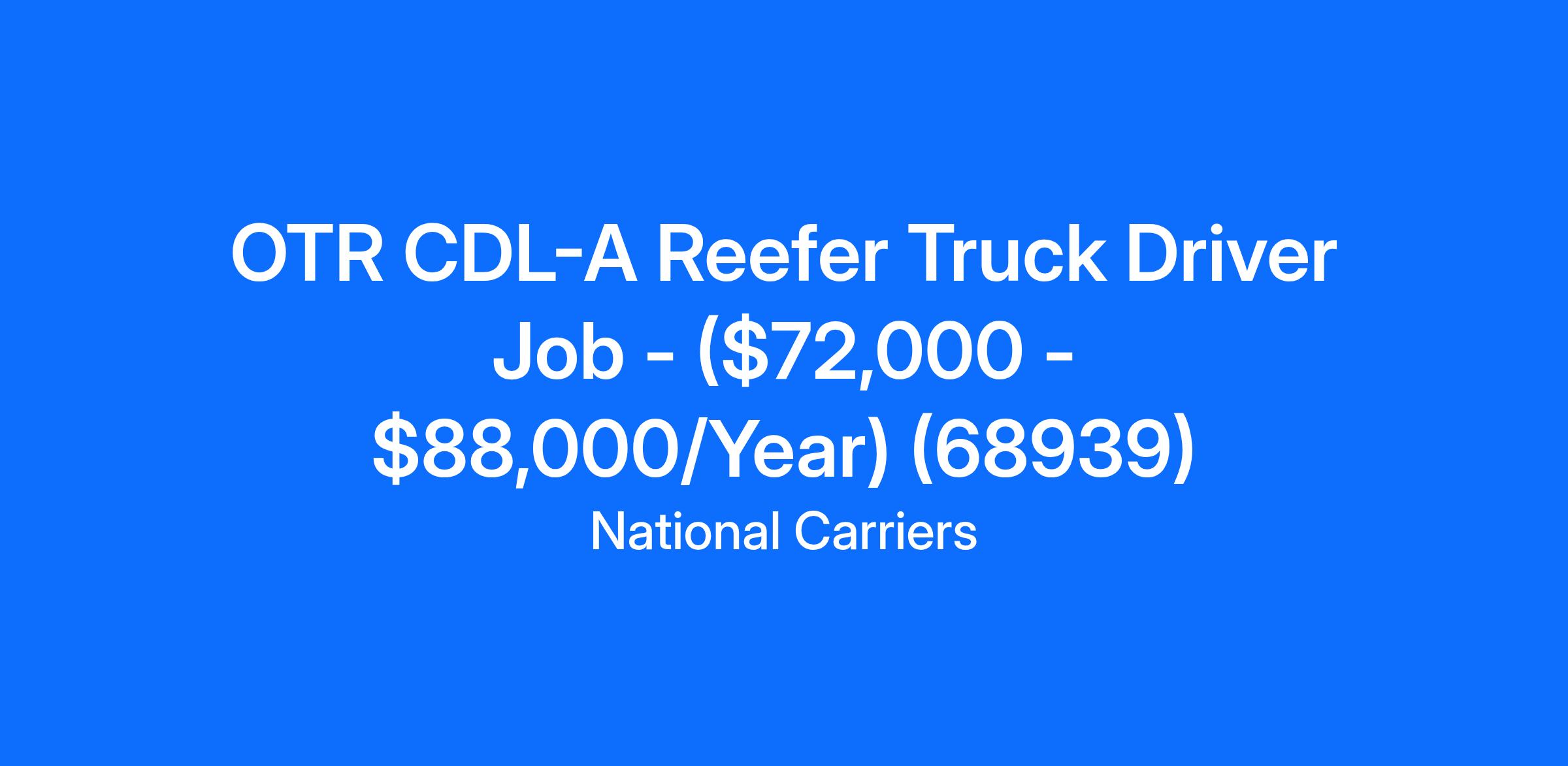 OTR CDL-A Reefer Truck Driver Job - ($72,000 - $88,000/Year) (68939)