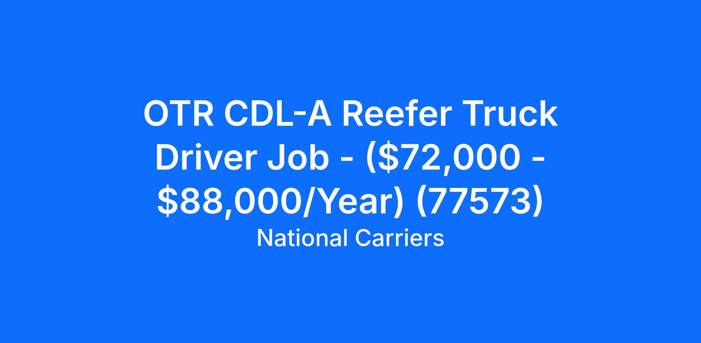 OTR CDL-A Reefer Truck Driver Job - ($72,000 - $88,000/Year) (77573)