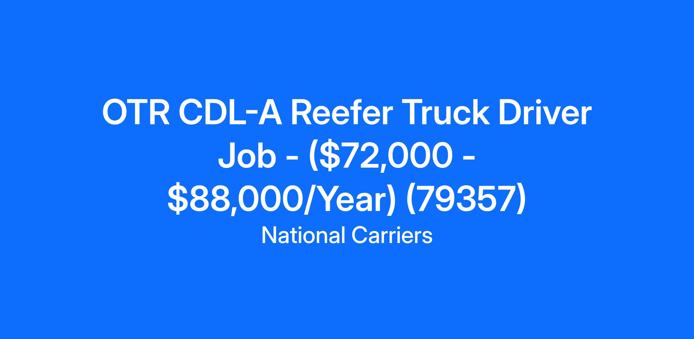 OTR CDL-A Reefer Truck Driver Job - ($72,000 - $88,000/Year) (79357)