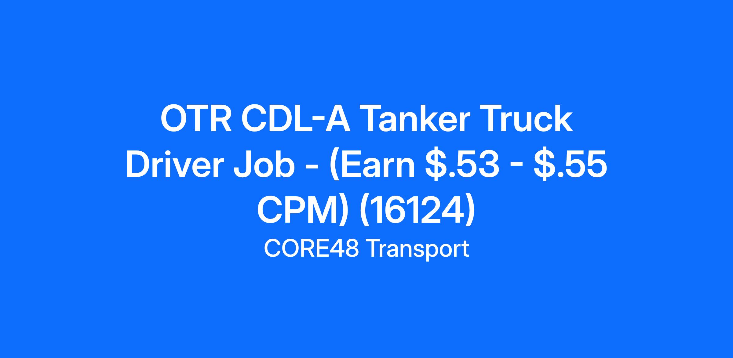OTR CDL-A Tanker Truck Driver Job - (Earn $.53 - $.55 CPM) (16124)