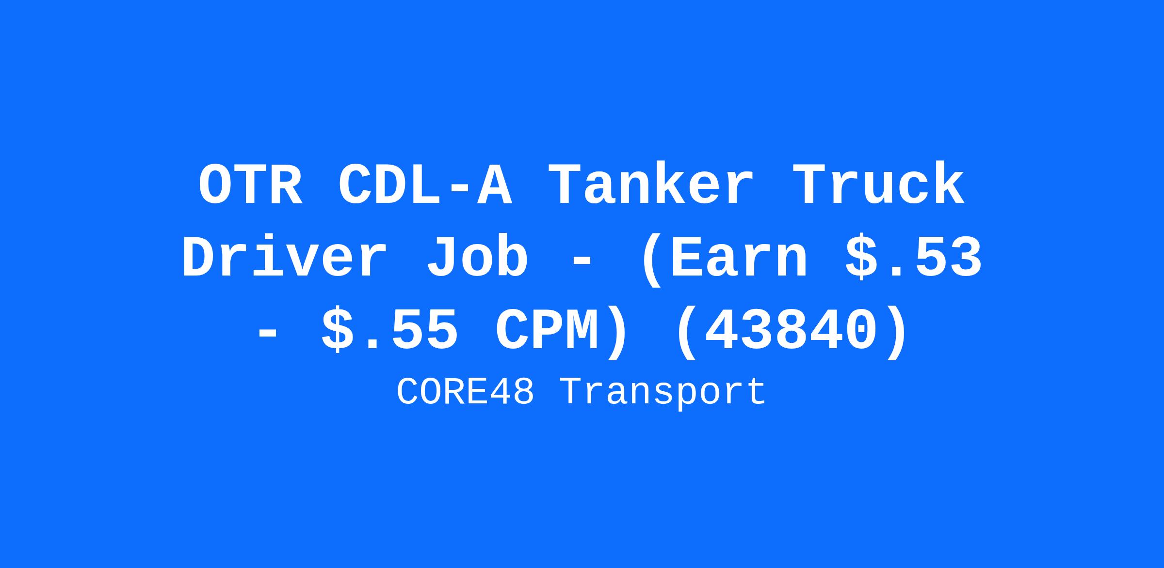 OTR CDL-A Tanker Truck Driver Job - (Earn $.53 - $.55 CPM) (43840)