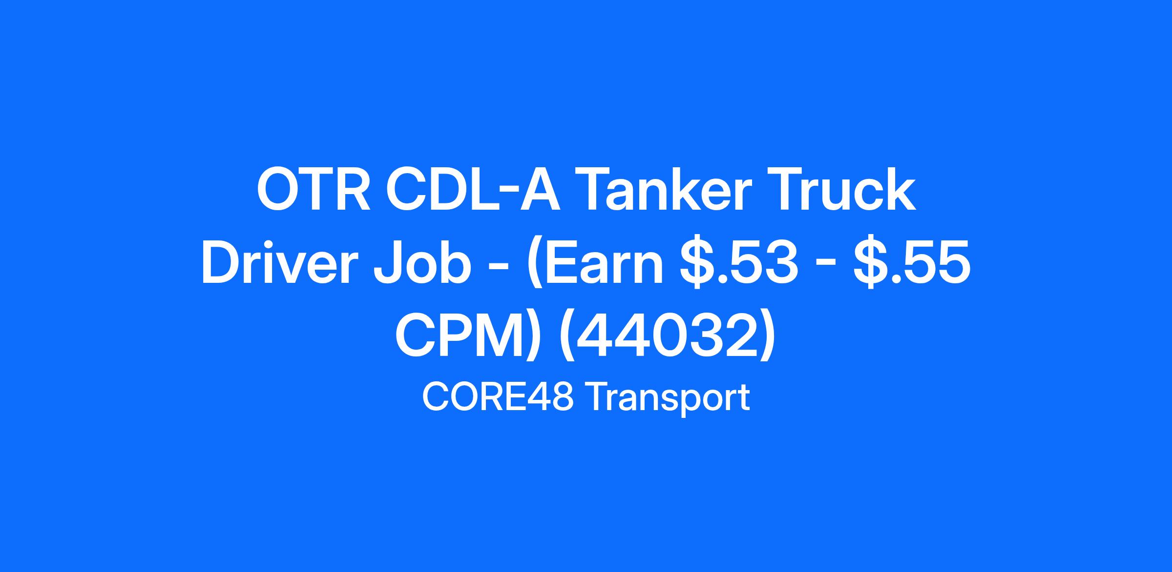 OTR CDL-A Tanker Truck Driver Job - (Earn $.53 - $.55 CPM) (44032)