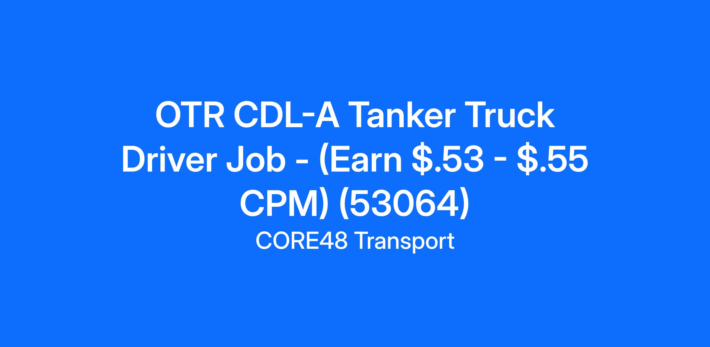 OTR CDL-A Tanker Truck Driver Job - (Earn $.53 - $.55 CPM) (53064)