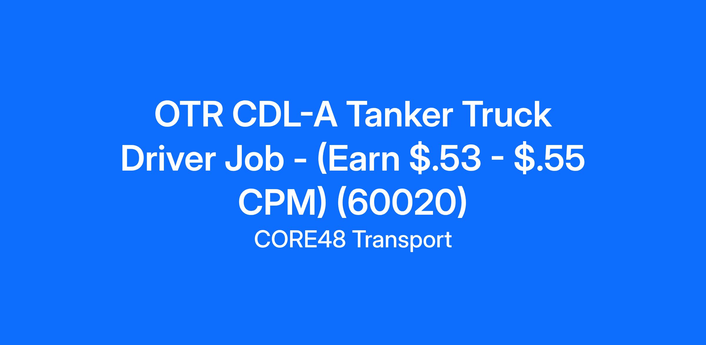 OTR CDL-A Tanker Truck Driver Job - (Earn $.53 - $.55 CPM) (60020)
