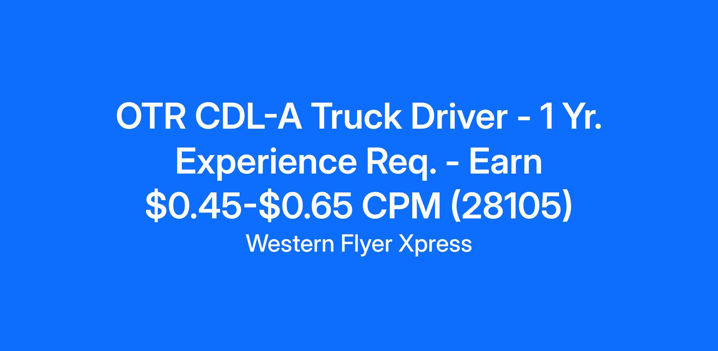 Western Flyer Xpress is Now Hiring OTR CDL-A Company Truck Drivers!