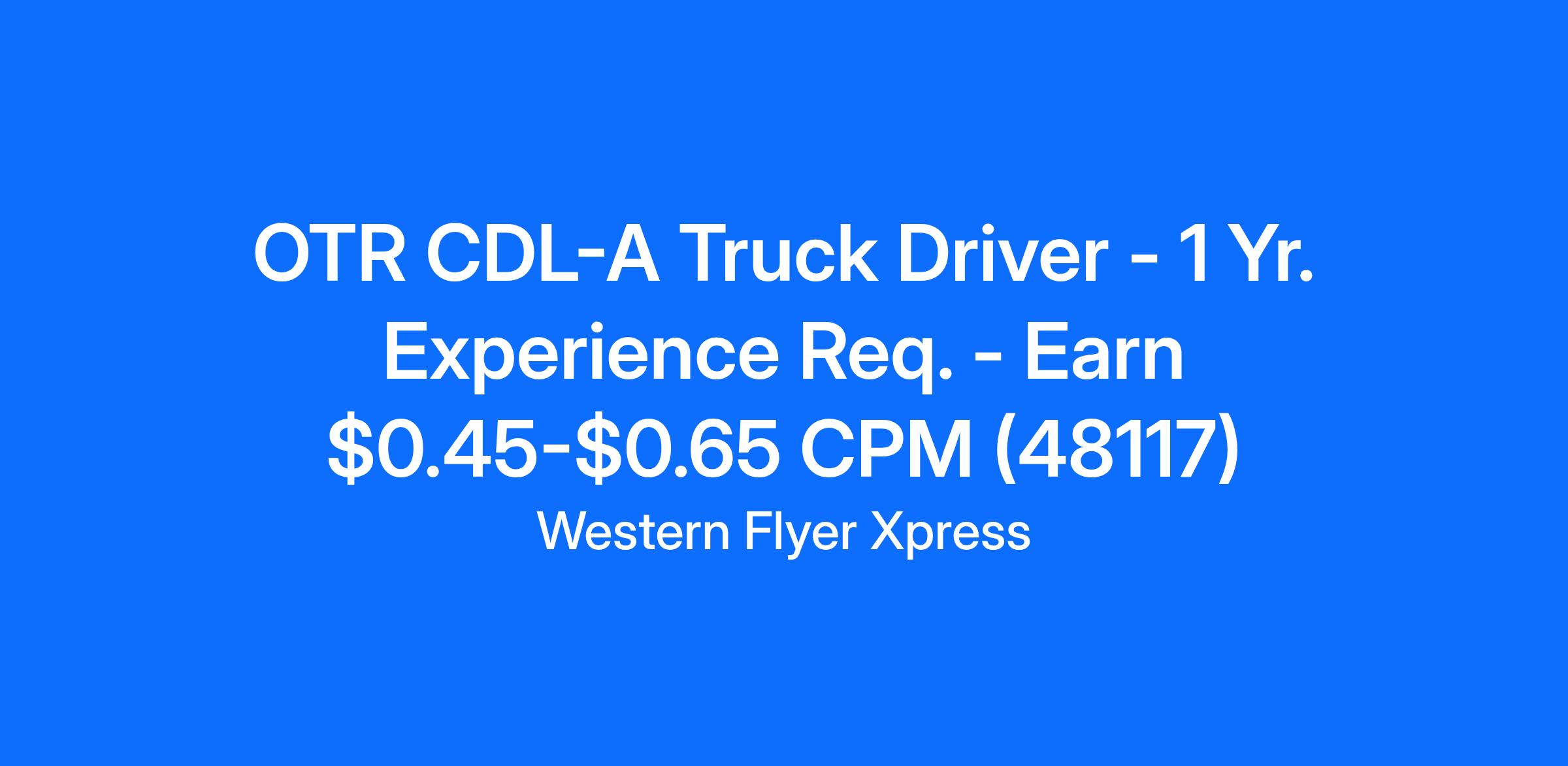 Western Flyer Xpress is Now Hiring OTR CDL-A Company Truck Drivers!
