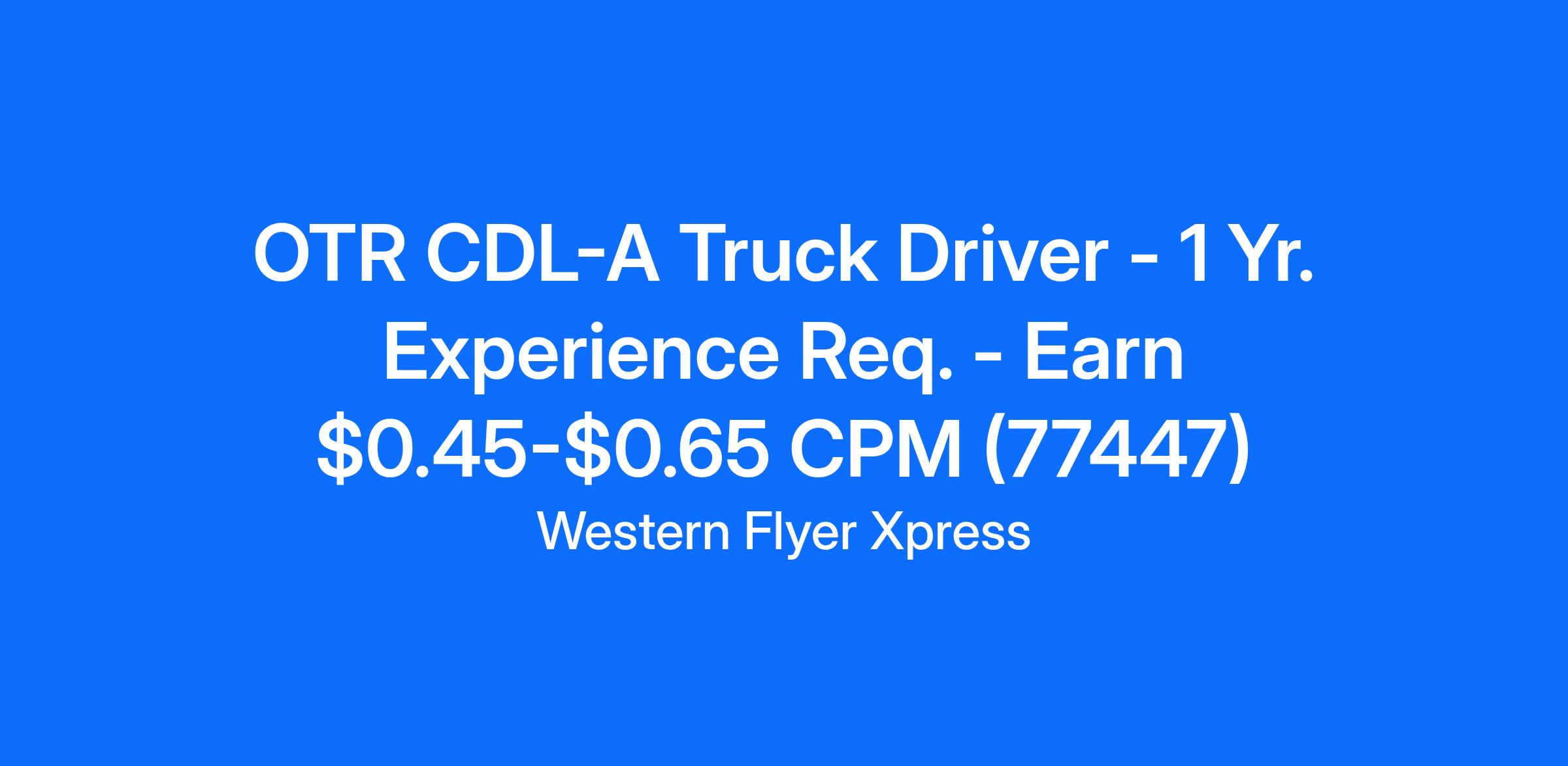 Western Flyer Xpress is Now Hiring OTR CDL-A Company Truck Drivers!