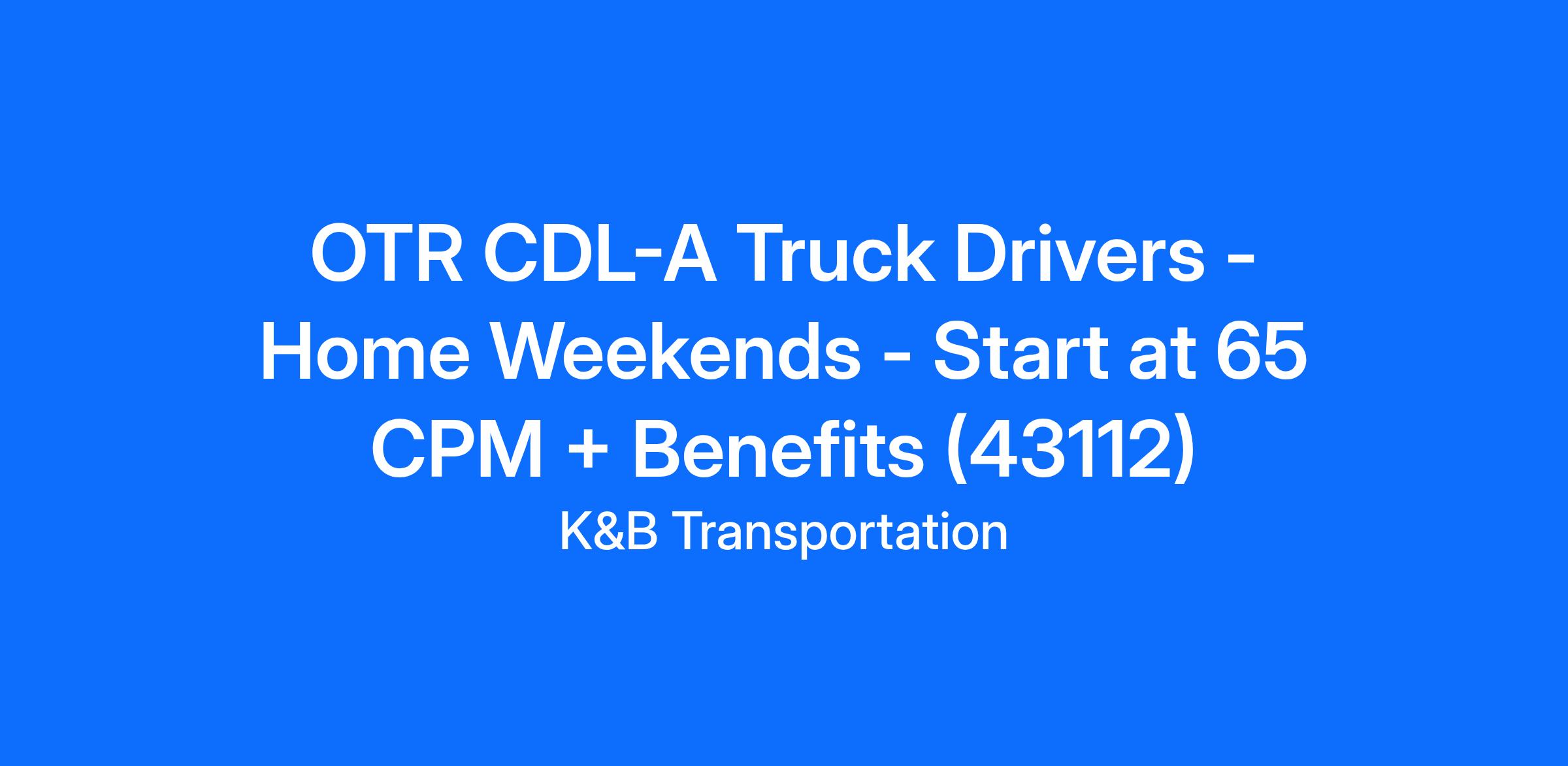 OTR CDL-A Truck Drivers - Home Weekends - Start at 65 CPM + Benefits (43112)