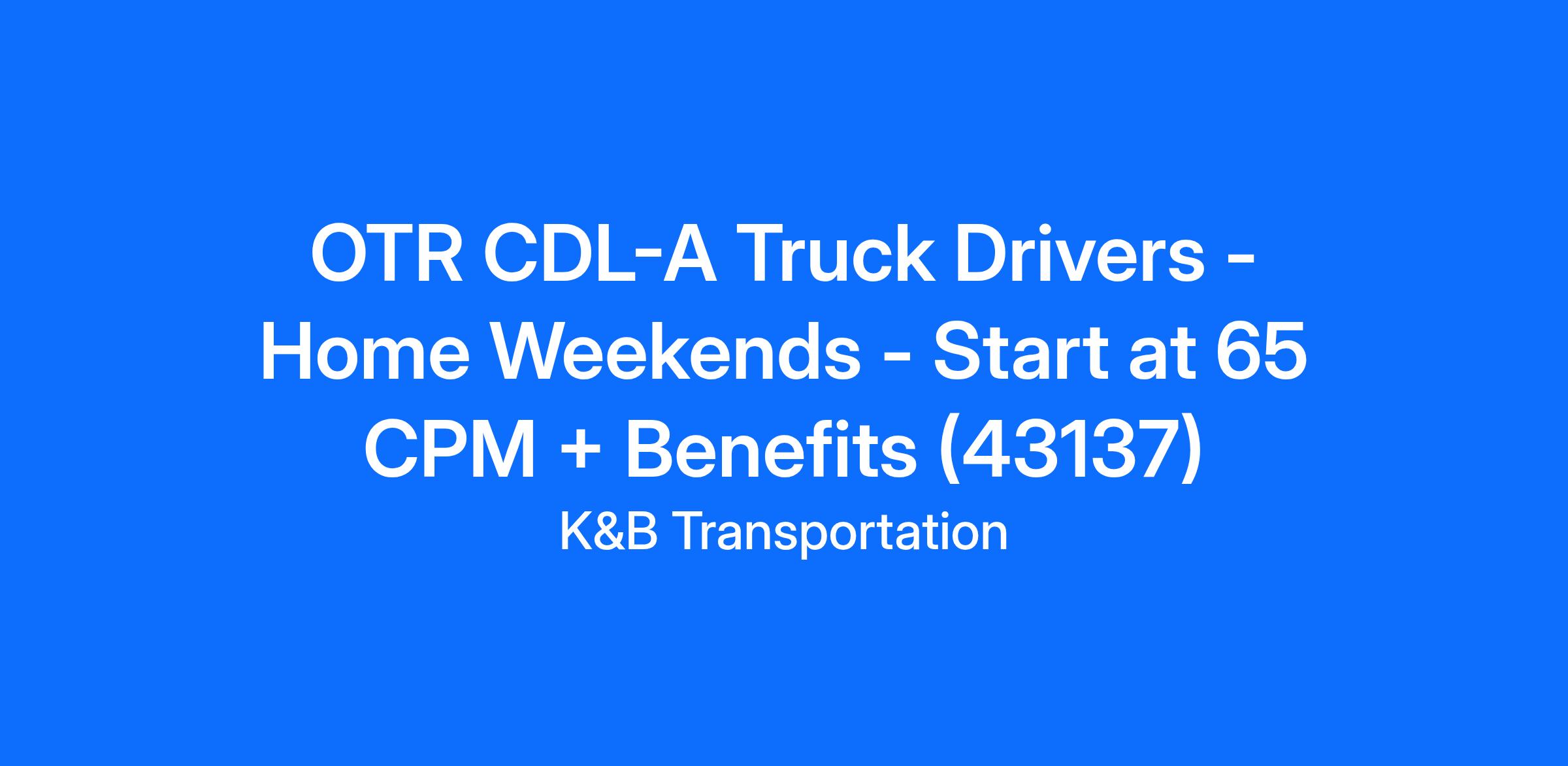 OTR CDL-A Truck Drivers - Home Weekends - Start at 65 CPM + Benefits (43137)