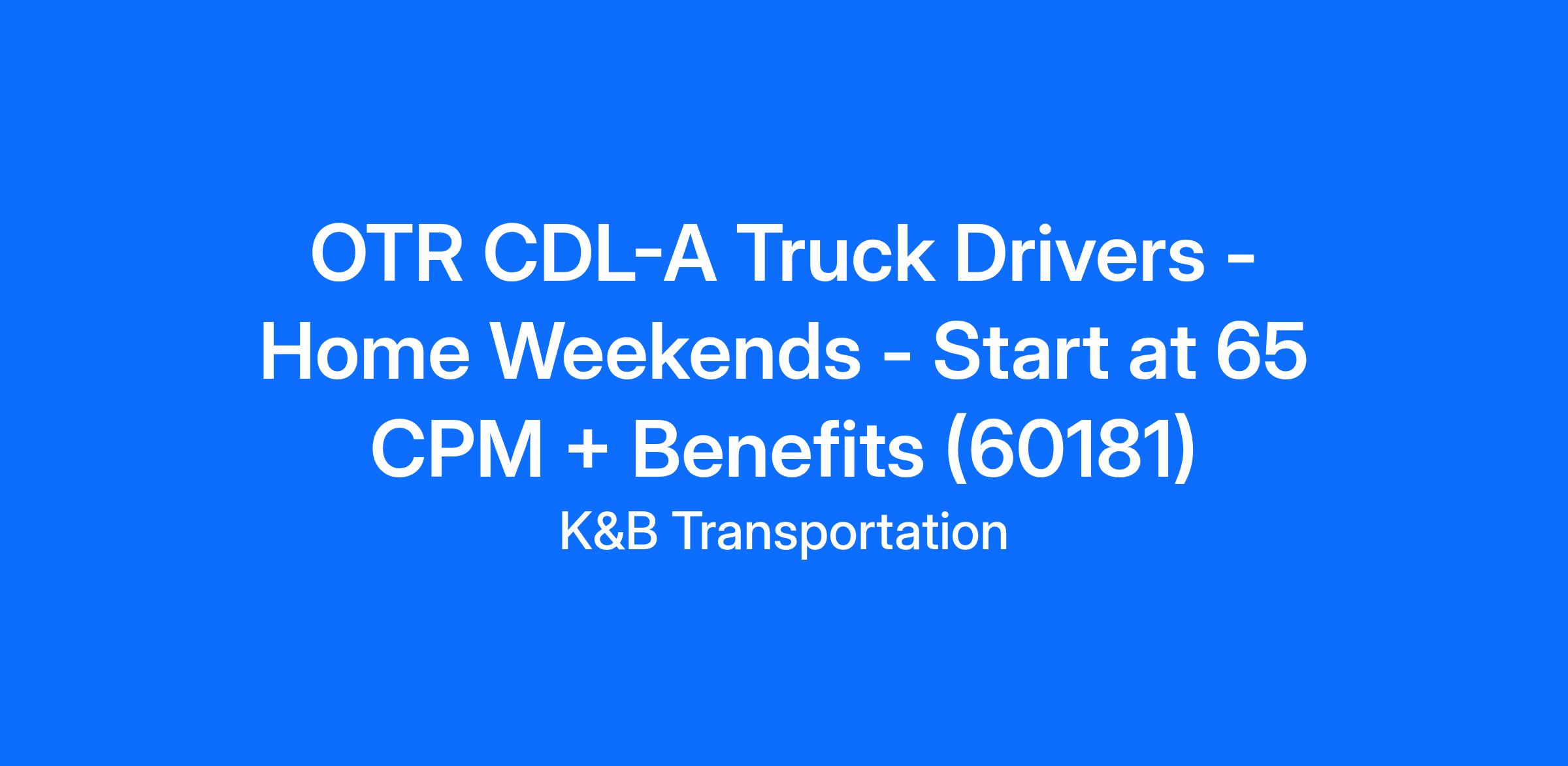 OTR CDL-A Truck Drivers - Home Weekends - Start at 65 CPM + Benefits (60181)