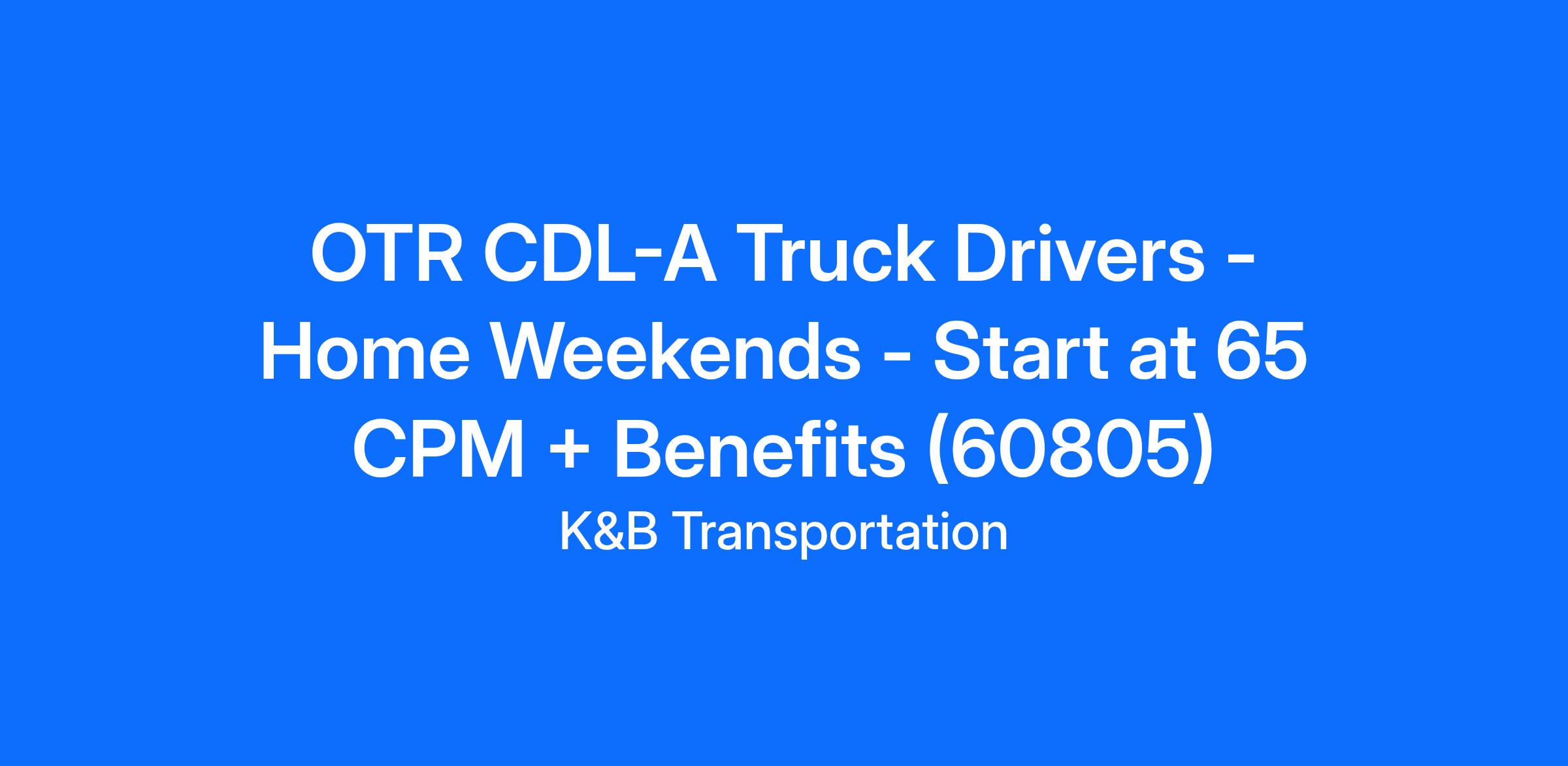 OTR CDL-A Truck Drivers - Home Weekends - Start at 65 CPM + Benefits (60805)