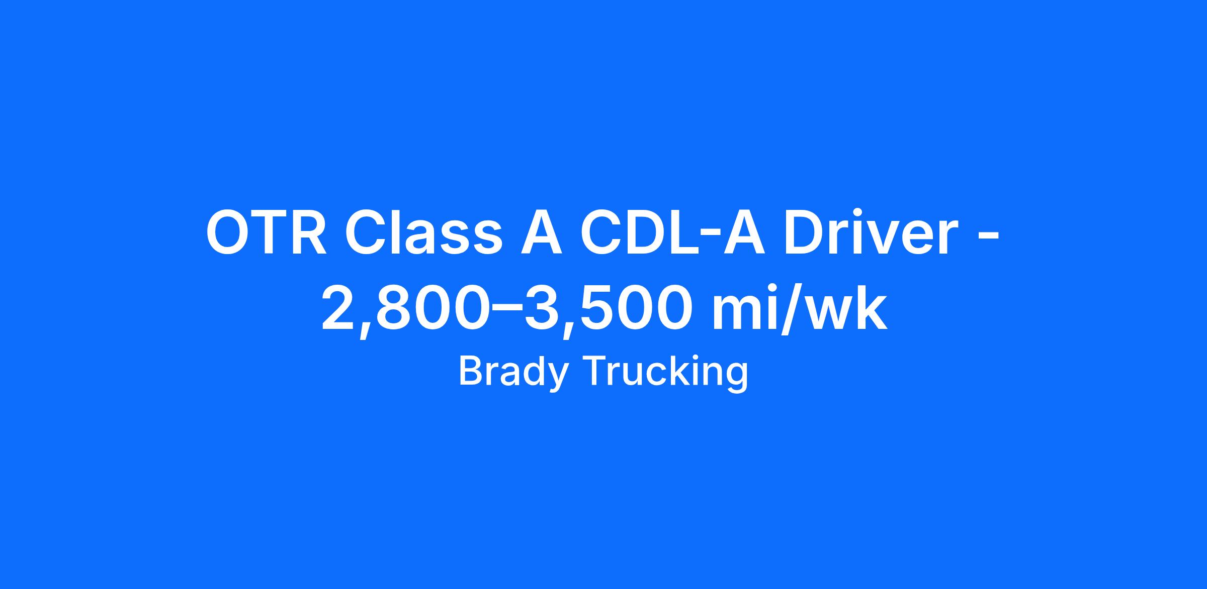 OTR Class A CDL-A Driver - 2,800–3,500 mi/wk