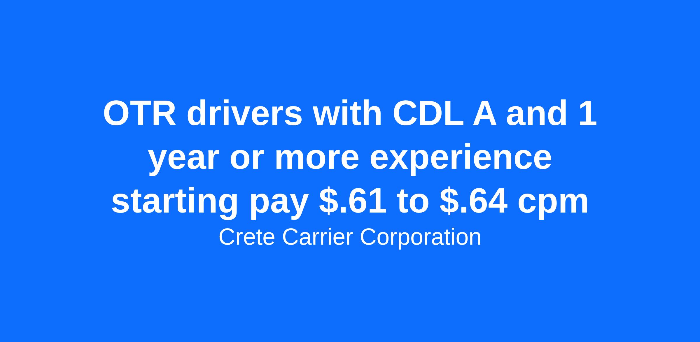 Indiana's location is ideal for Crete Carrier and Shaffer Trucking drivers. We offer home daily local jobs, dedicated fleets with weekly home time or regional and national OTR. And don't forget we have a terminal in Indianapolis.Salary: Top 50% average $96,542 per yearCPM: Starting pay $.61 to $.64 cpmExperience: One-year verifiable tractor trailer experience with a class A CDL