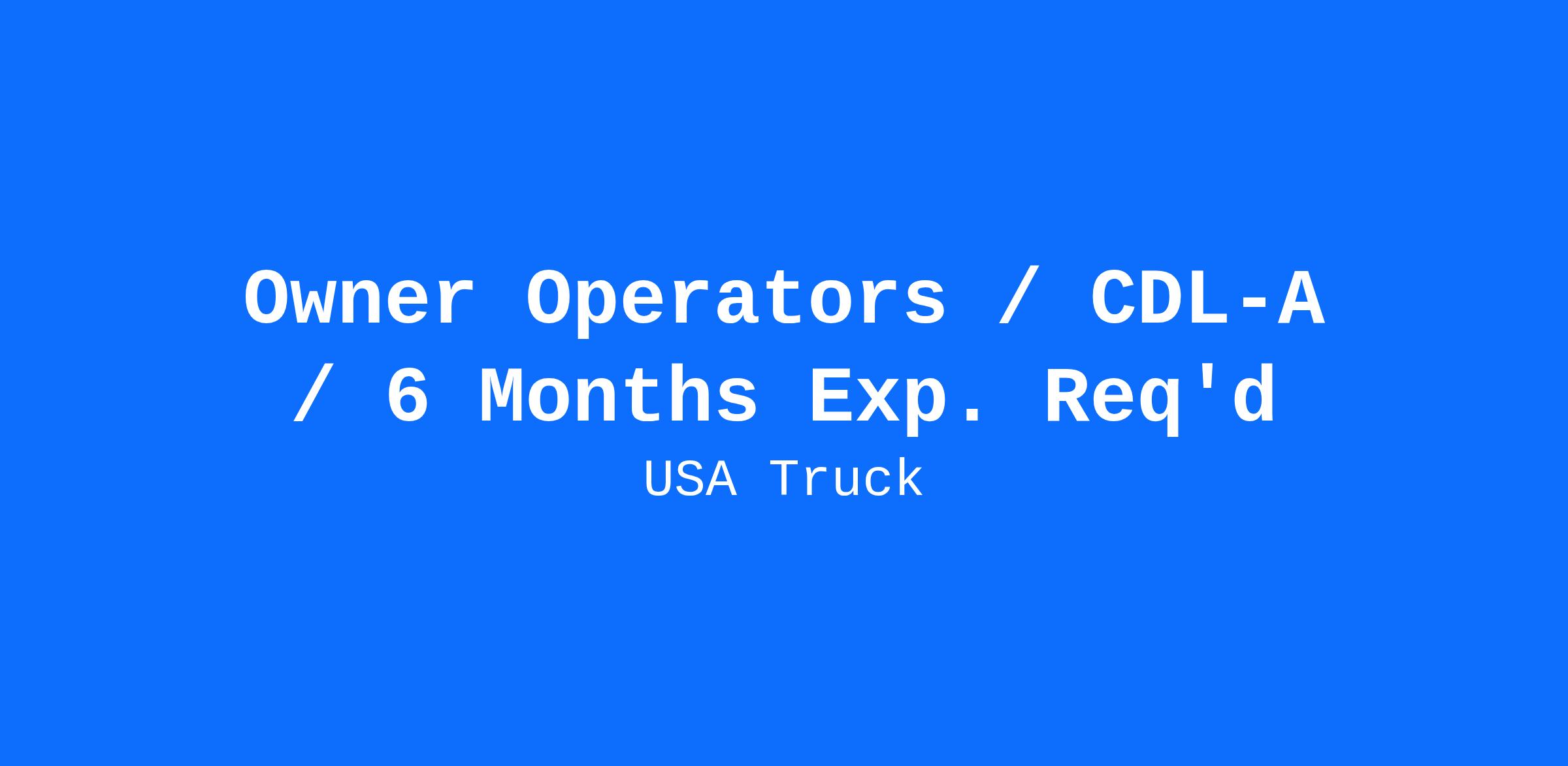 Owner Operators / CDL-A / 6 Months Exp. Req'd