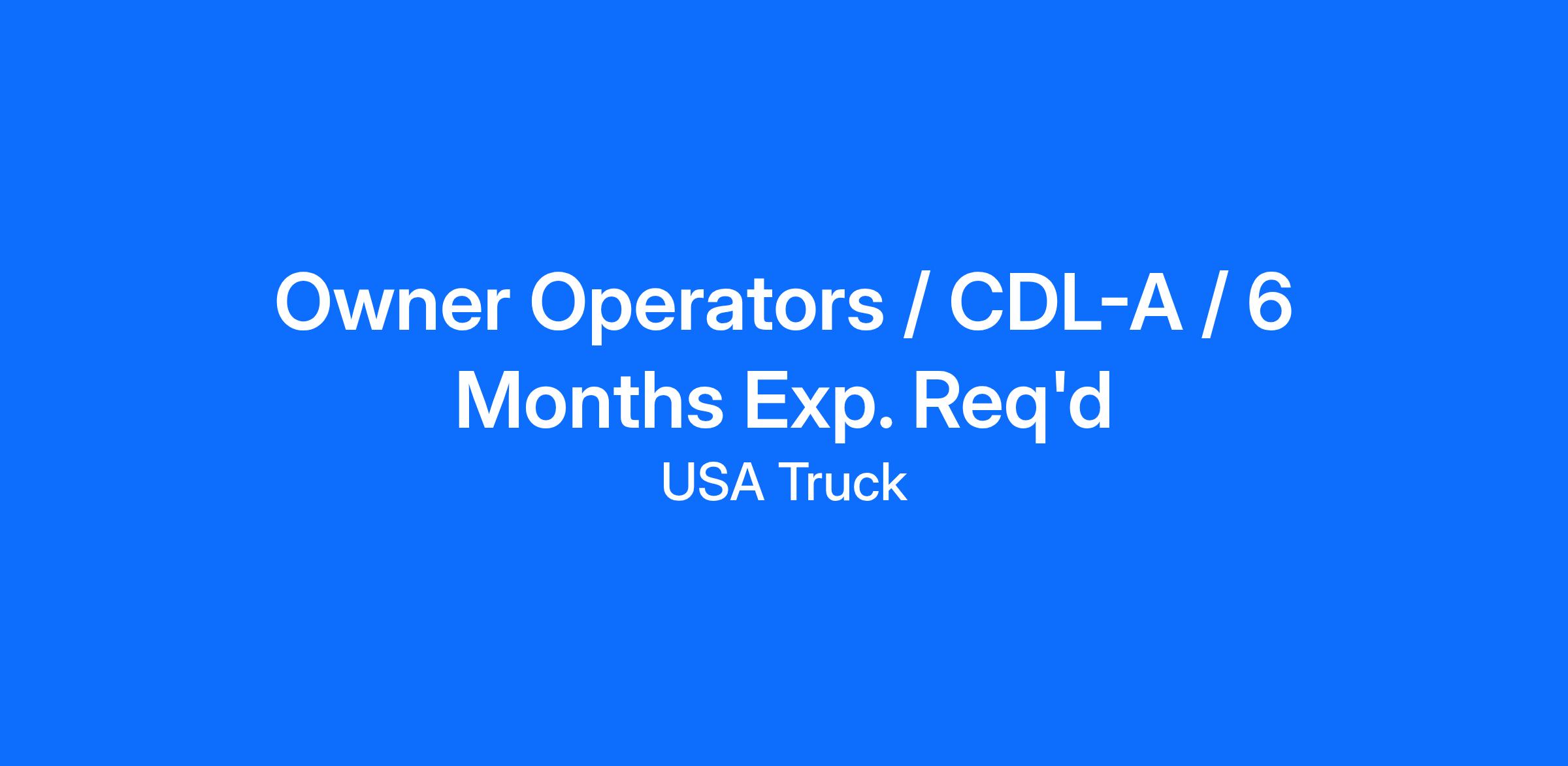 Owner Operators / CDL-A / 6 Months Exp. Req'd