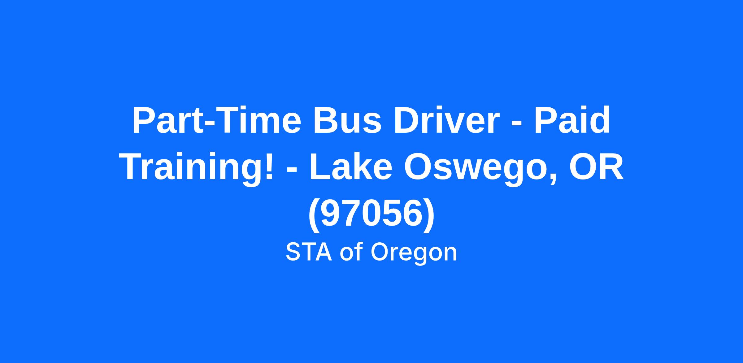Part-Time Bus Driver - Paid Training! - Lake Oswego, OR (97056)
