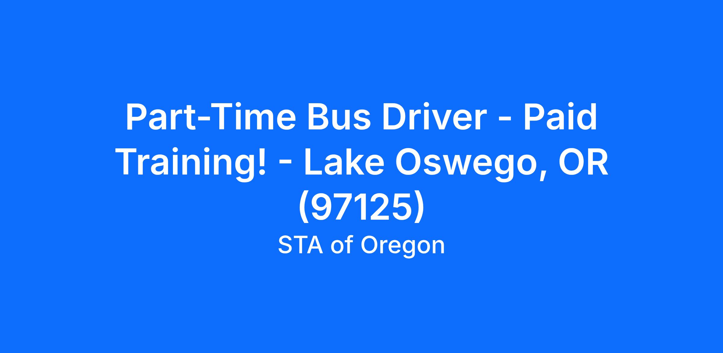 Part-Time Bus Driver - Paid Training! - Lake Oswego, OR (97125)