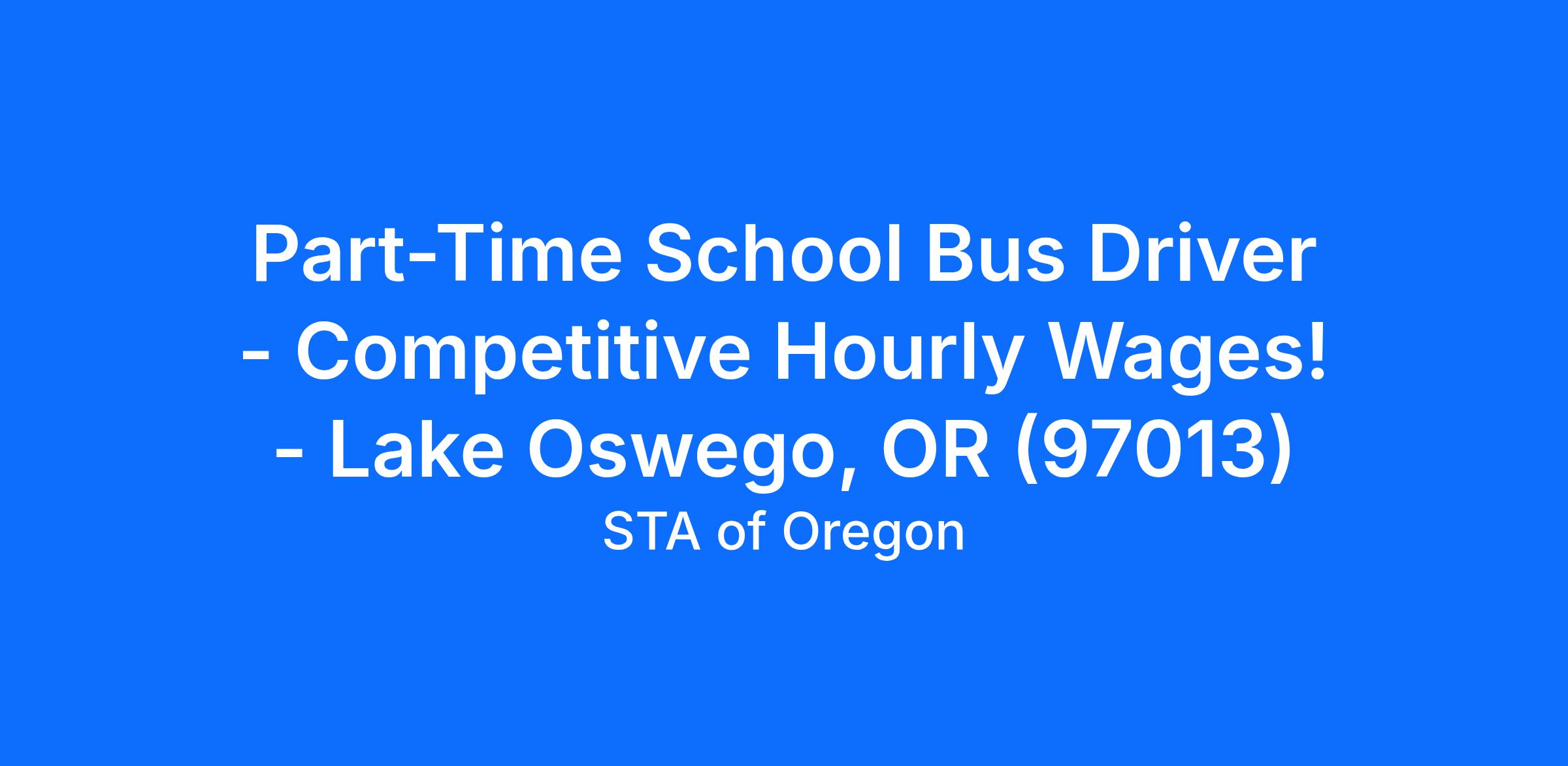 Part-Time School Bus Driver - Competitive Hourly Wages! - Lake Oswego, OR (97013)