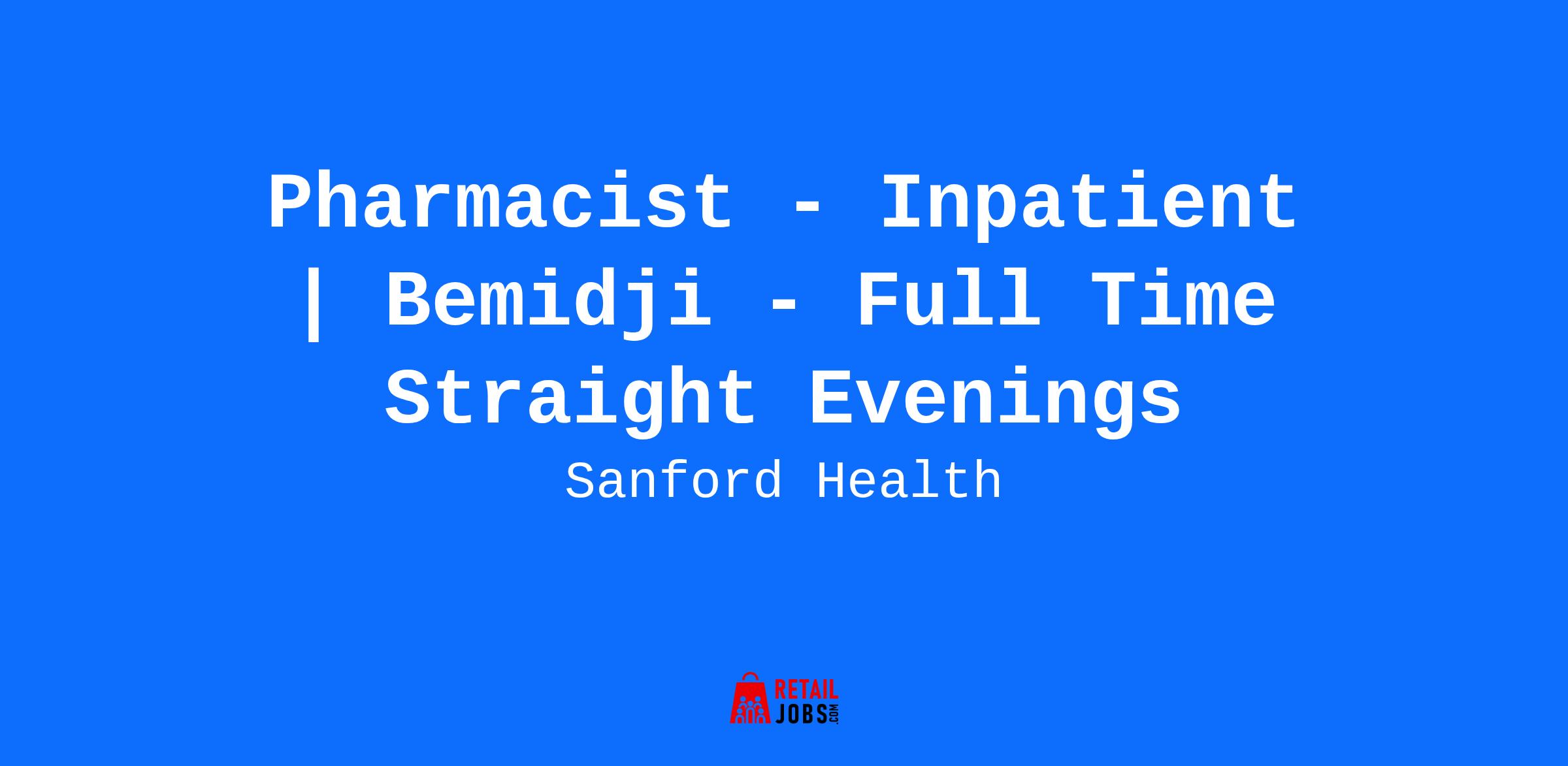 Careers With Purpose Sanford Health is one of the largest and fastest-growing not-for-profit health systems in the United States. We're proud to offer many development and advancement opportunities to our nearly 50,000 members of the Sanford Family who are dedicated to the work of health and healing across our broad footprint. Facility: Bemidji Medical Center Location: Bemidji, MN Address: 1300 Anne St NW, Bemidji, MN 56601, USA Shift: 10 Hours - Evening Shifts Job Schedule: Full time Weekly Hours: 35.00 Salary Range: $58.00 - $87.50 Department Details Shift: - 12:00pm - 10:30pm - 7 days on 7 days off - rotating Job Summary Review prescriptions to assure accuracy, to ascertain the needed ingredients, and to evaluate their suitability. Provide information and advice regarding drug interactions, side effects, dosage, and proper medication storage. In a medical center or institutional setting, the Pharmacist reviews and interprets provider orders, provides drug information, assists in problem solving, and provides other aspects of pharmaceutical care. Duties may consist of unit dose dispensing, IV Admixtures, outpatient prescriptions, navigating the electronic medical record, compounding, and working with automated dispensing devices. The Pharmacist utilizes appropriate age-related patient information to assess the pharmaceutical needs of patients, which may include provision of pharmaceutical care to neonatal, pediatric, adolescent, adult, and geriatric patients. The Pharmacist follows all established regulations and standards that govern the practice of pharmacy. May be required to act as a shift supervisor under direct or indirect supervision by department managers. Demonstrates good written and verbal communication skills. Must be able to learn and utilize new technology as the profession of pharmacy evolves. Provides oversight and clinical supervision for pharmacy services and pharmacy support personnel. Pharmacy services at Sanford Health may include involvement in acute care surgery, neurology, cardiology, pediatrics, oncology, infusion services, intensive care, general medicine, dialysis, transplant, antimicrobial stewardship, and medication reconciliation. May include decentralized clinical functions, such as direct patient interaction/interdisciplinary team rounding, chart reviews, customer or patient counseling, collecting accurate medication list. May also include centralized clinical functions, such as checking and dispensing medications and overseeing the clinical functions of the IV room. Qualifications In a retail/community pharmacy setting: Graduate of an accredited School of Pharmacy. Must have a thorough knowledge of drugs and their actions; knowledge of state and local regulations. In a medical center or institutional setting: Graduate of an accredited School of Pharmacy. Must have a thorough knowledge of drugs and their actions; knowledge of state and local regulations. Hospital experience or residency preferred. License must be in good standing by the State Board of Pharmacy in state(s) of practice and/or possess multi-state licensure privileges as required by position. Benefits Sanford Health offers an attractive benefits package for qualifying full-time and part-time employees. Depending on eligibility, a variety of benefits include health insurance, dental insurance, vision insurance, life insurance, a 401(k) retirement plan, work/life balance benefits, and a generous time off package to maintain a healthy home-work balance. For more information about Total Rewards, visit https://sanfordcareers.com/benefits . Sanford is an EEO/AA Employer M/F/Disability/Vet. If you are an individual with a disability and would like to request an accommodation for help with your online application, please call 1-877-673-0854 or send an email to talent@sanfordhealth.org . Sanford Health has a Drug Free Workplace Policy. An accepted offer will require a drug screen and pre-employment background screening as a condition of employment. Req Number: R-0237070 Job Function: Allied Health Featured: NoBy applying, you consent to your information being transmitted by Monster to the Employer, as data controller, through the Employer’s data processor SonicJobs. See Sanford Health Terms & Conditions at https://www.appcast.io/legal/job-seeker-terms-of-use and Privacy Policy at https://www.sanfordhealth.org/privacy-statement and SonicJobs Privacy Policy at https://www.sonicjobs.com/us/privacy-policy and Terms of Use at https://www.sonicjobs.com/us/terms-conditions