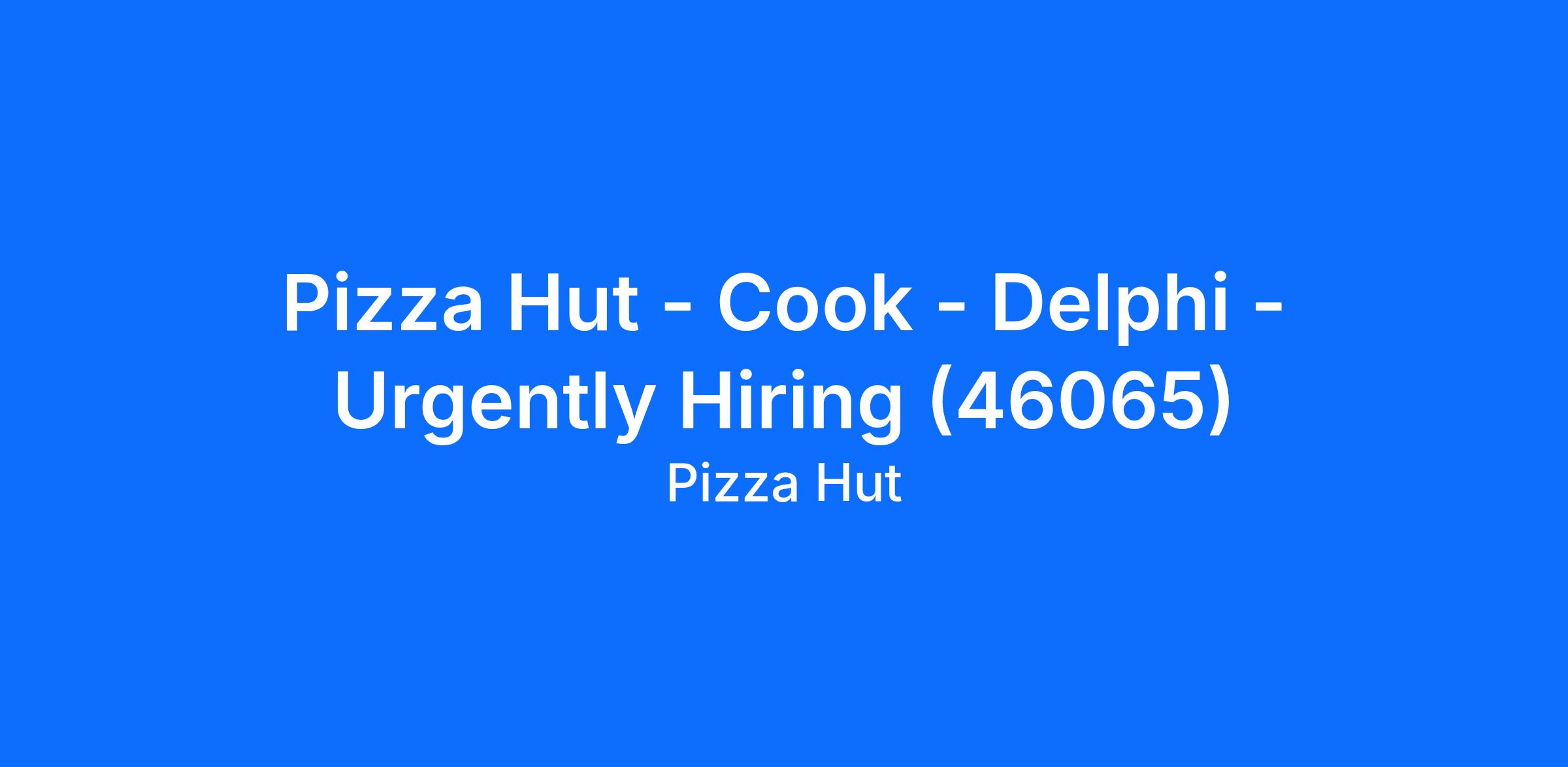 Pizza Hut - Cook - Delphi - Urgently Hiring (46065)