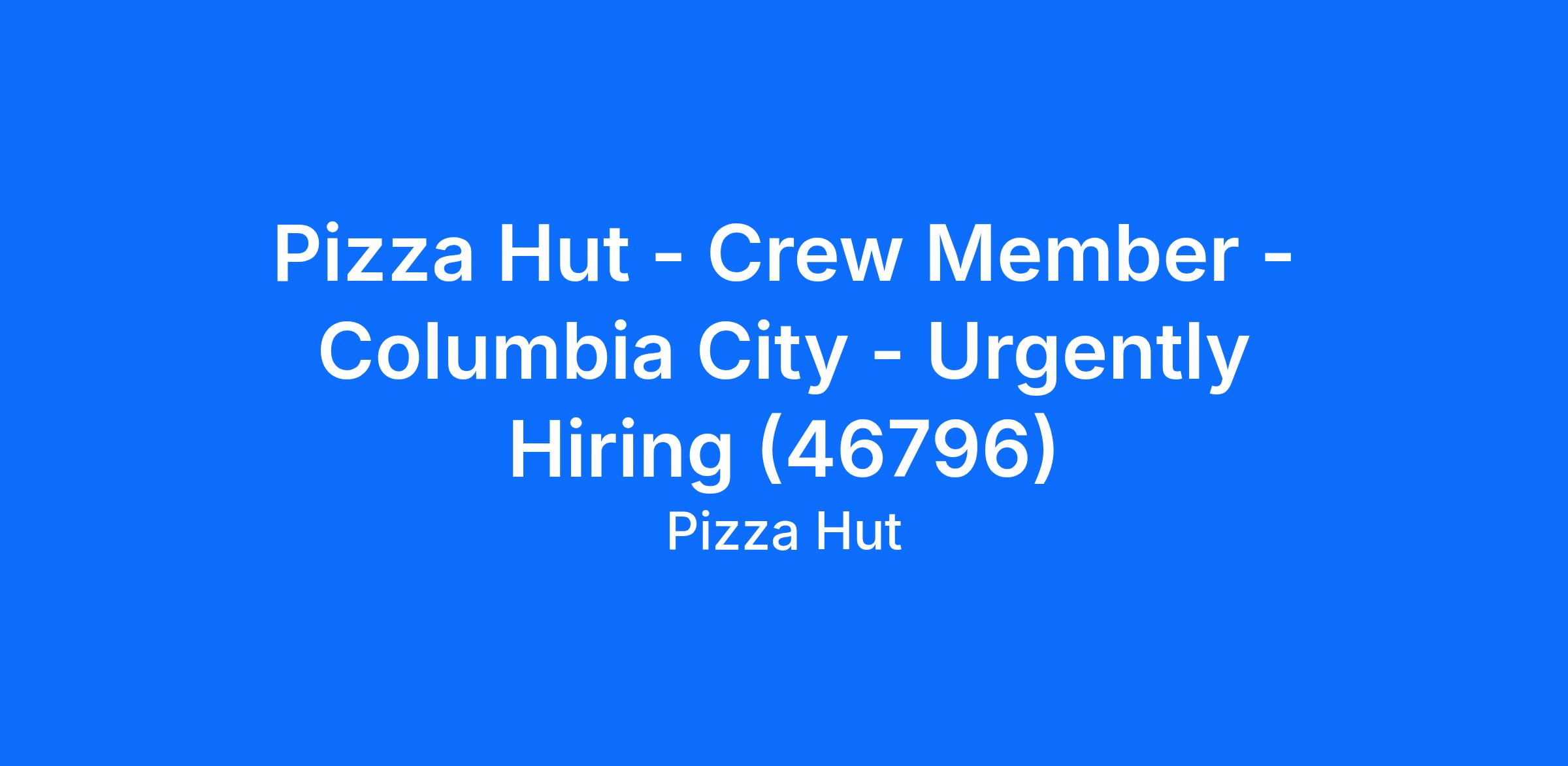 Pizza Hut - Crew Member - Columbia City - Urgently Hiring (46796)