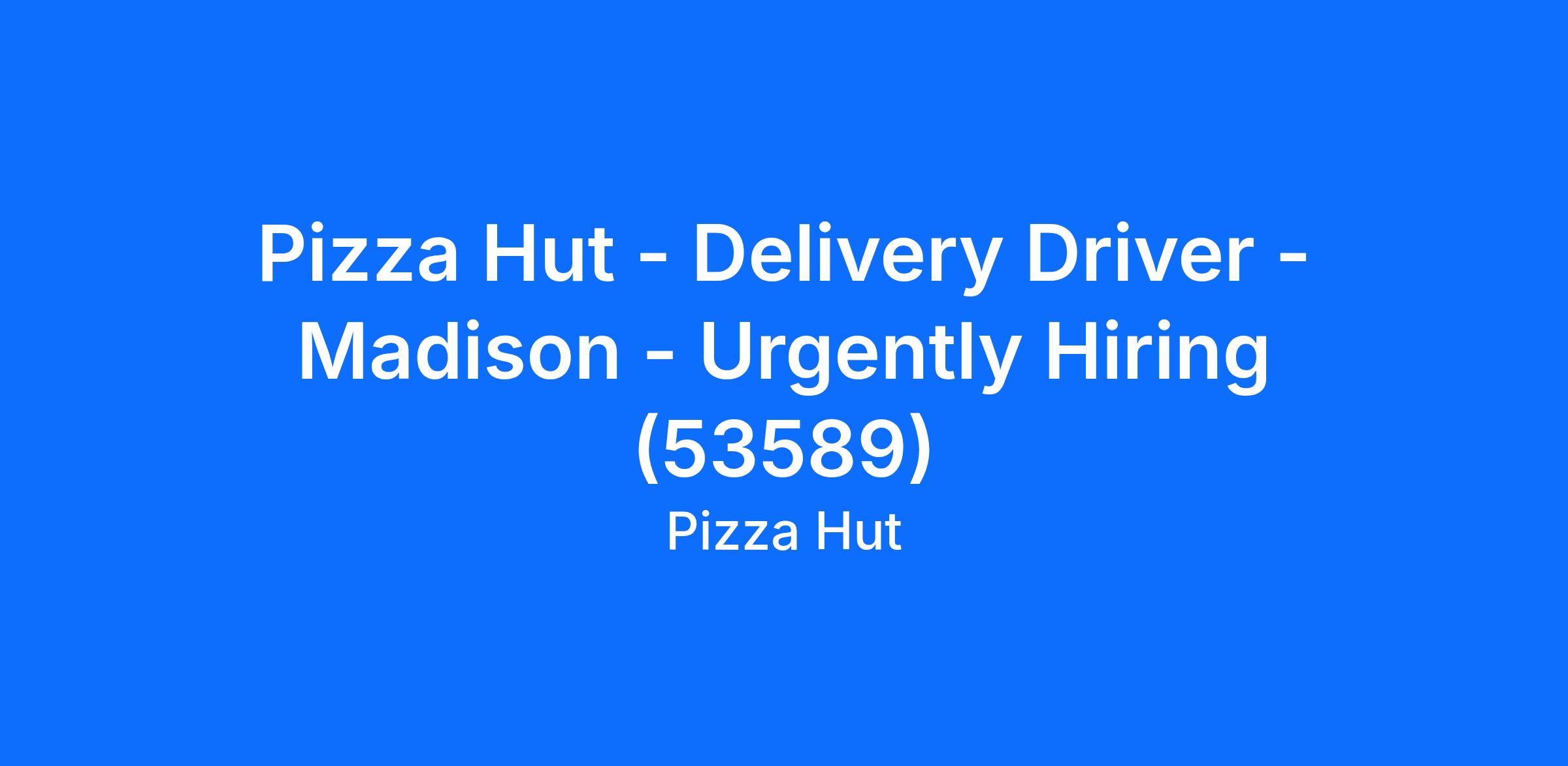 Pizza Hut - Delivery Driver - Madison - Urgently Hiring (53589)
