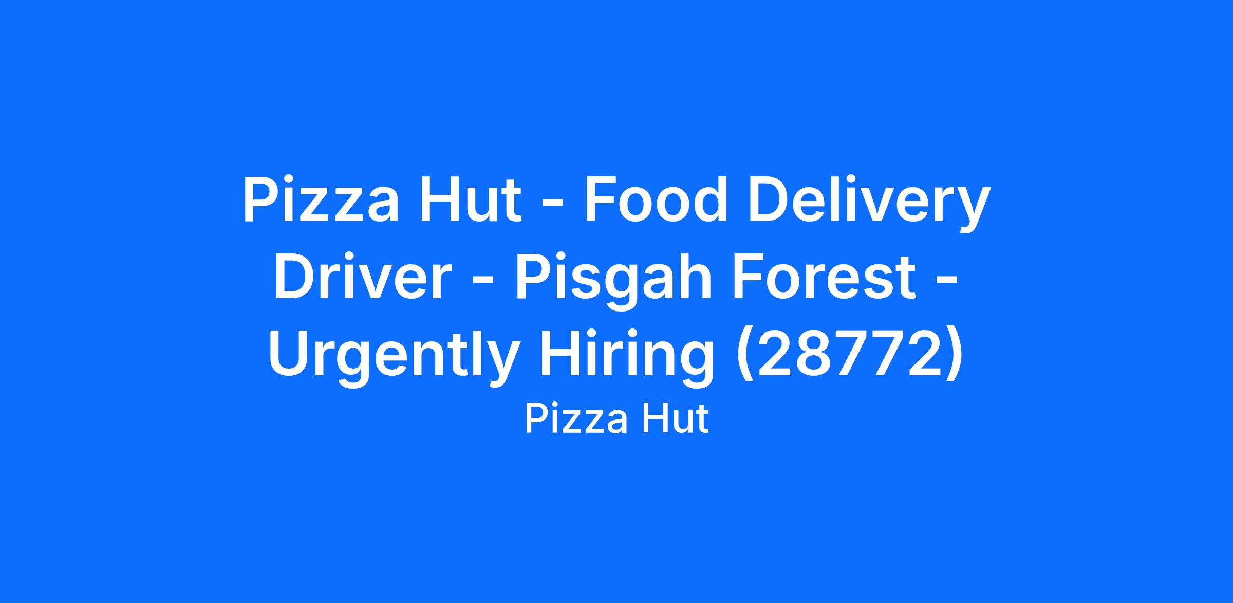 Pizza Hut - Food Delivery Driver - Pisgah Forest - Urgently Hiring (28772)