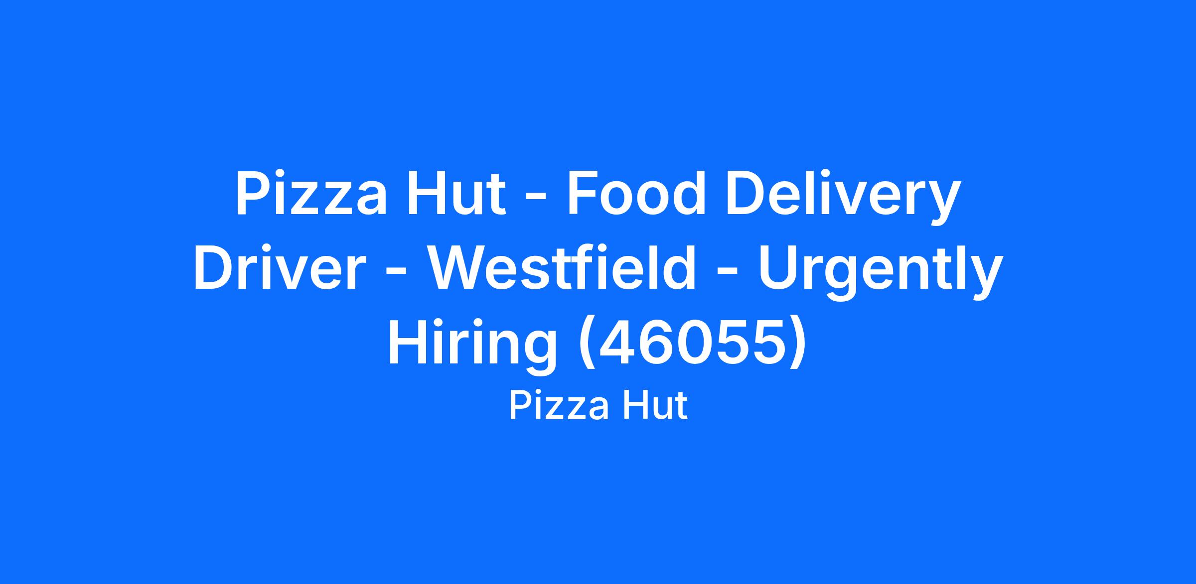 Pizza Hut - Food Delivery Driver - Westfield - Urgently Hiring (46055)