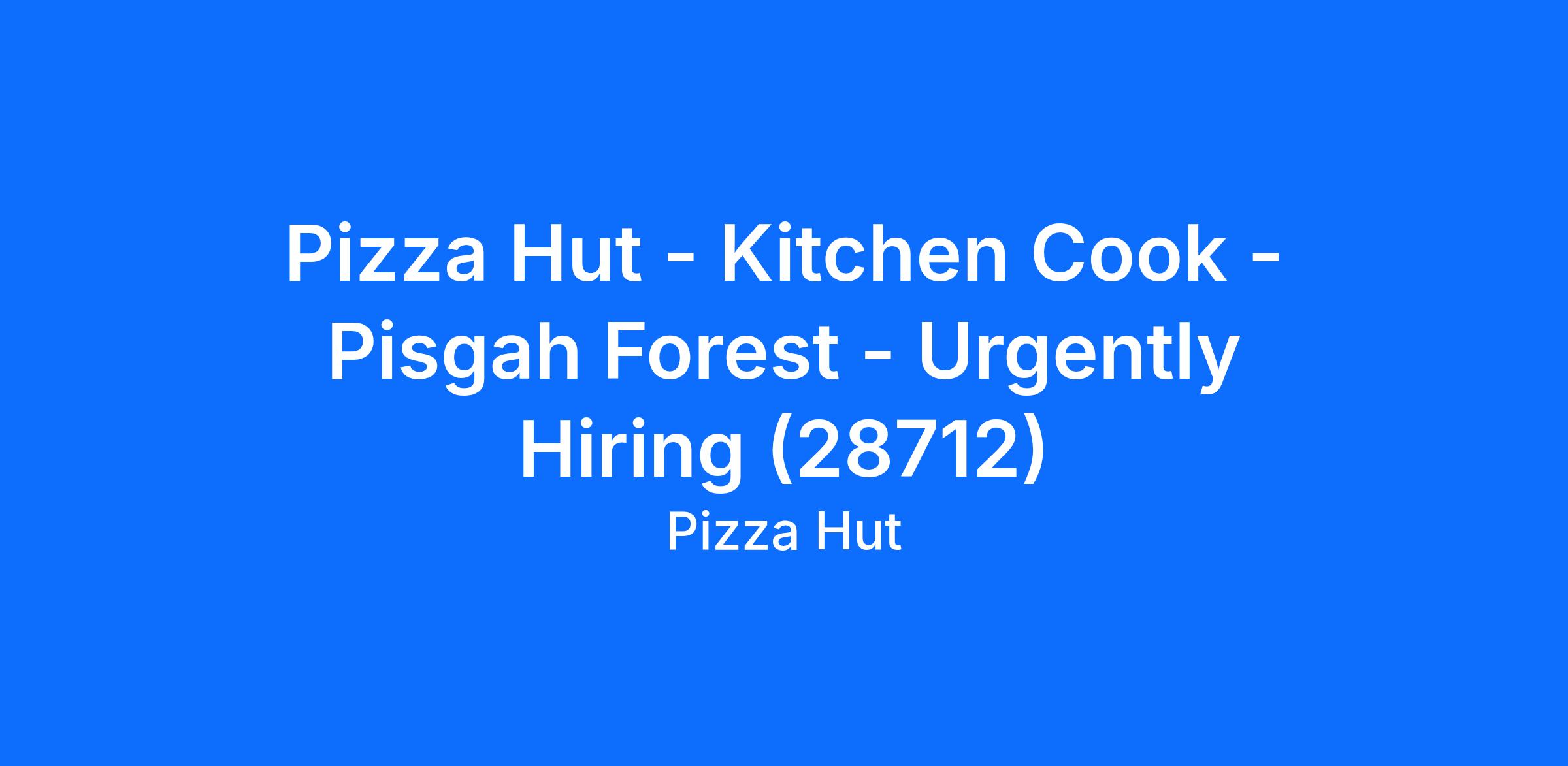 Pizza Hut - Kitchen Cook - Pisgah Forest - Urgently Hiring (28712)