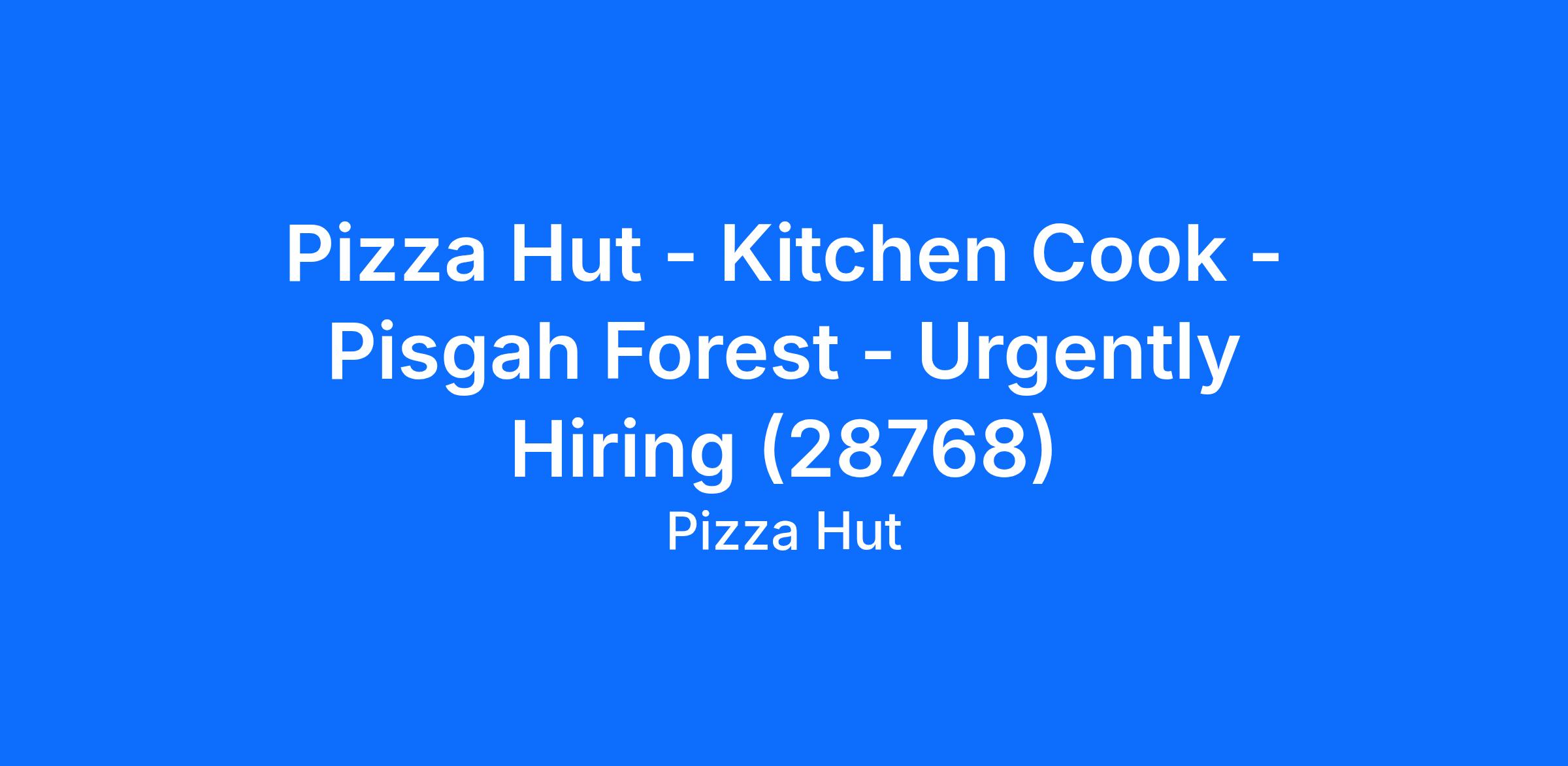 Pizza Hut - Kitchen Cook - Pisgah Forest - Urgently Hiring (28768)