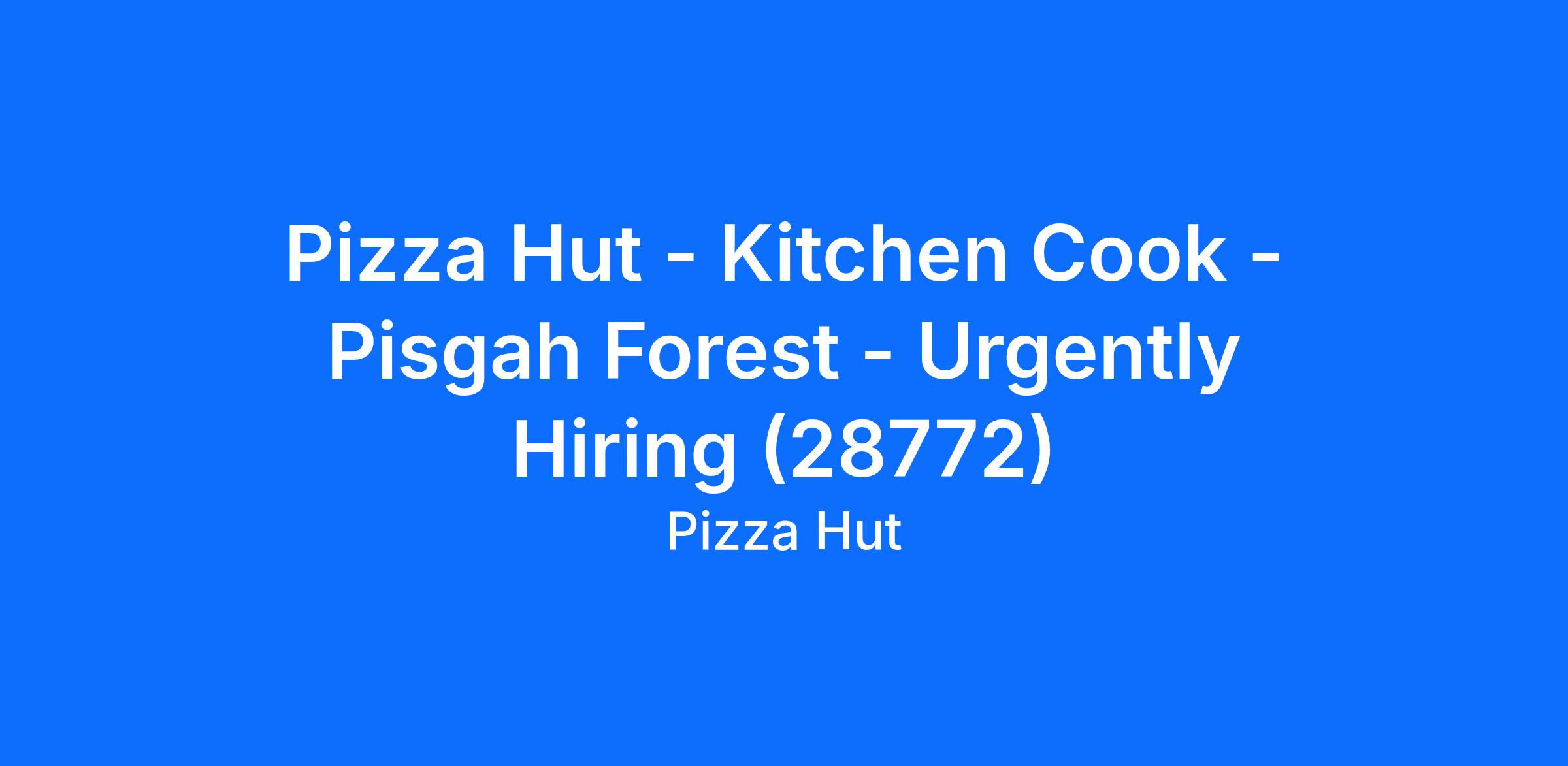 Pizza Hut - Kitchen Cook - Pisgah Forest - Urgently Hiring (28772)