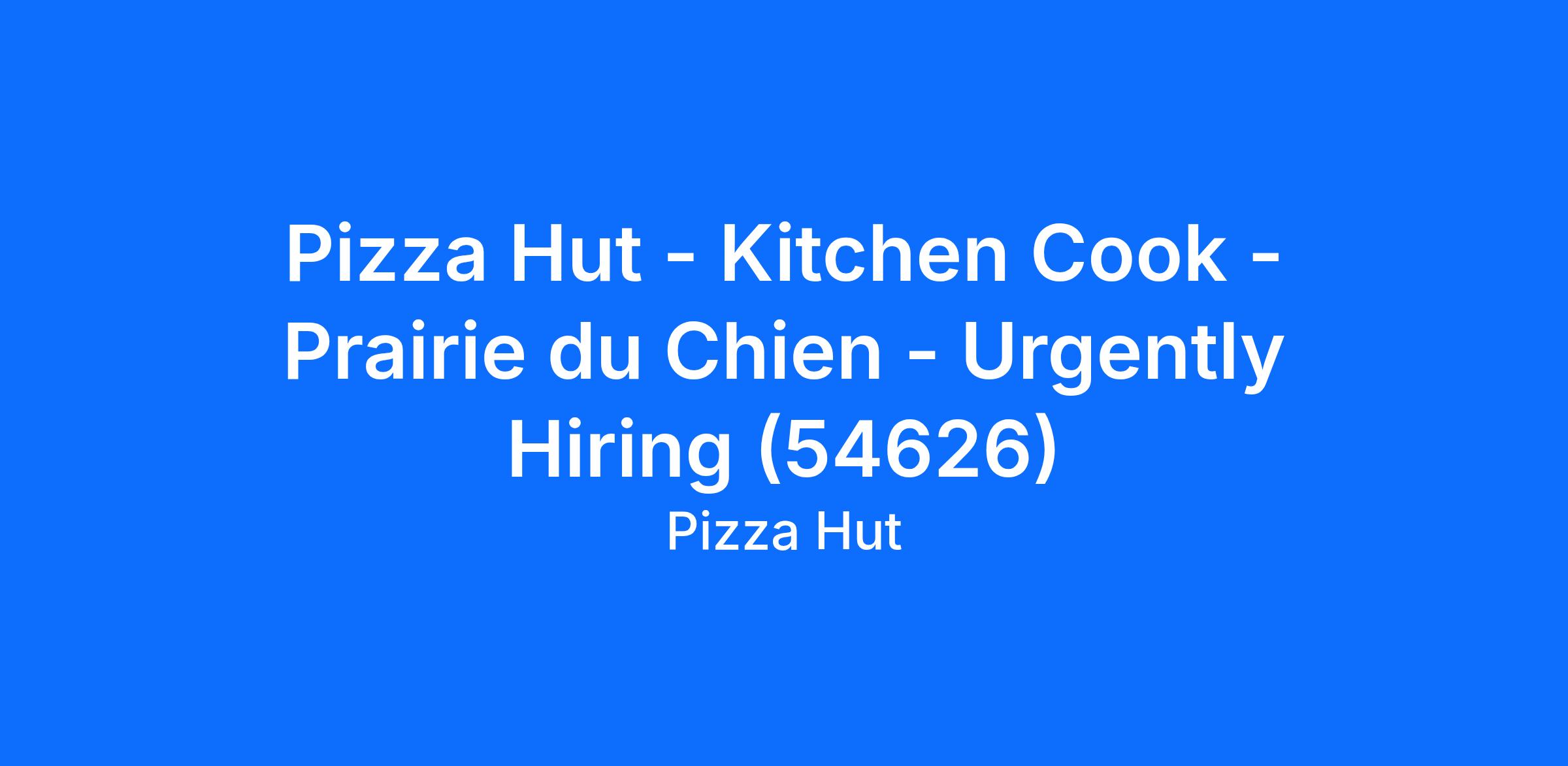 Pizza Hut - Kitchen Cook - Prairie du Chien - Urgently Hiring (54626)
