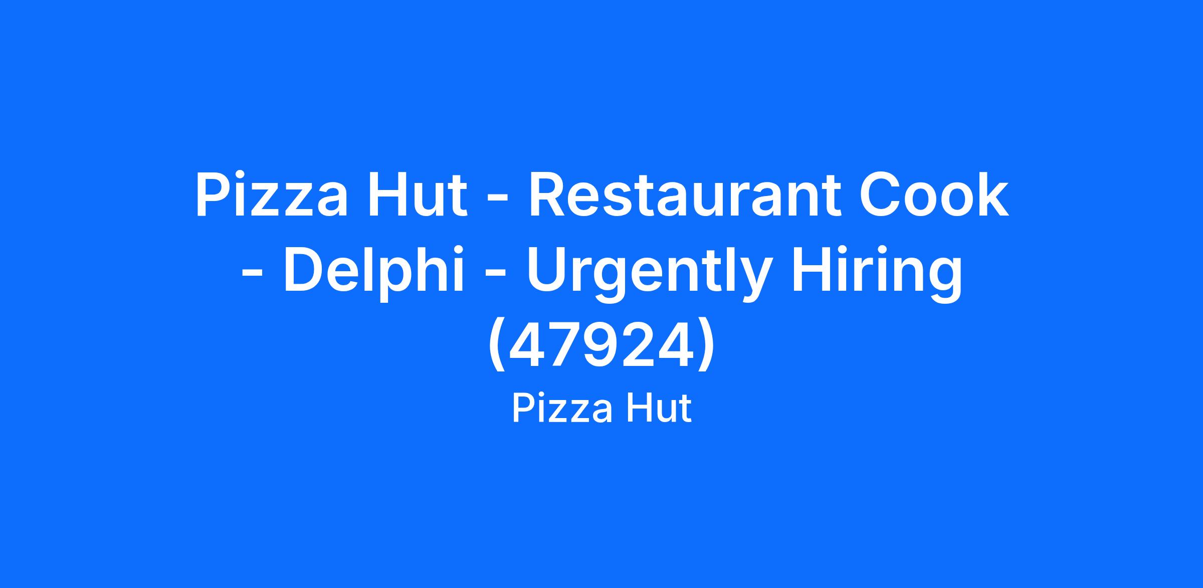 Pizza Hut - Restaurant Cook - Delphi - Urgently Hiring (47924)