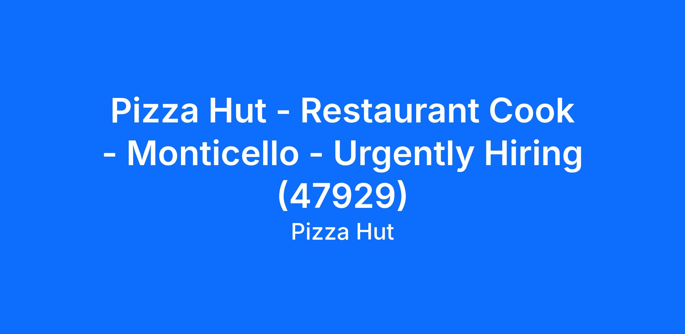 Pizza Hut - Restaurant Cook - Monticello - Urgently Hiring (47929)