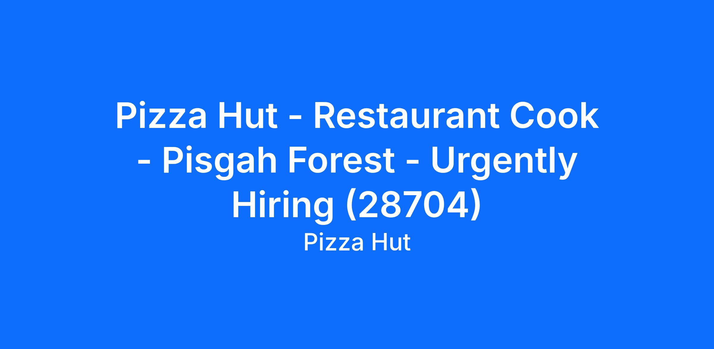 Pizza Hut - Restaurant Cook - Pisgah Forest - Urgently Hiring (28704)