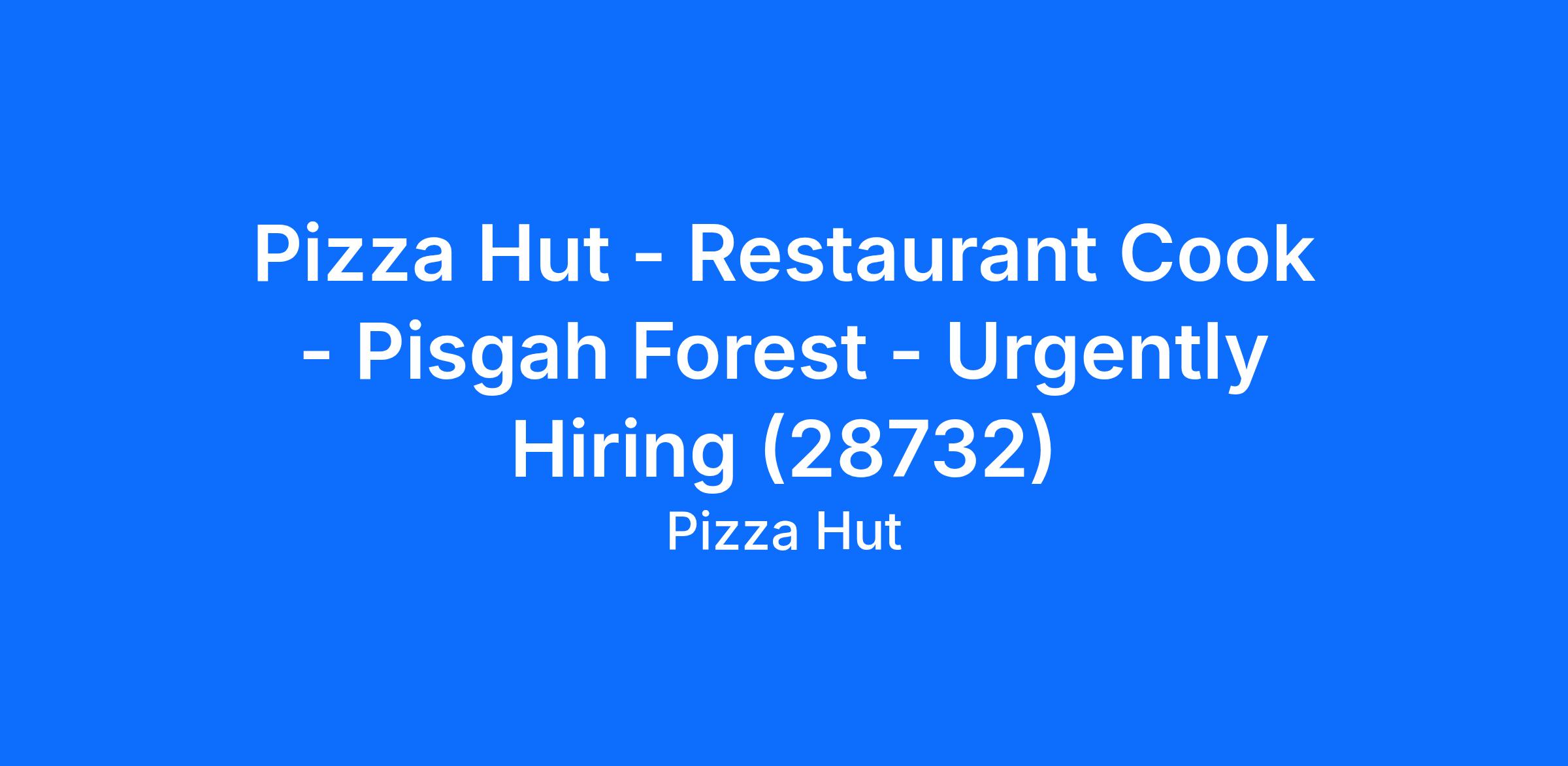 Pizza Hut - Restaurant Cook - Pisgah Forest - Urgently Hiring (28732)