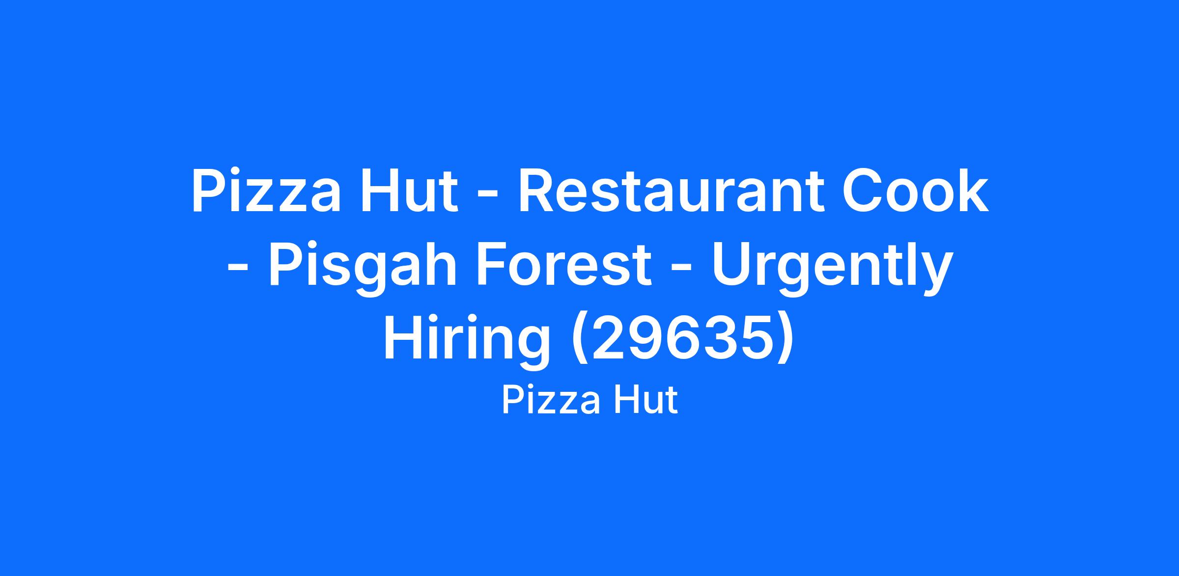 Pizza Hut - Restaurant Cook - Pisgah Forest - Urgently Hiring (29635)